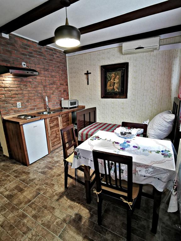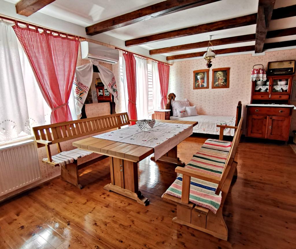Apartmán Slavonska kuća se nachází v centru města Pleternica a nabízí ubytování zařízené v autochtonním stylu, se 2 jednolůžkovými a 1 dvoulůžkovým pokojem, společným prostorným prostorem pro bydlení a společenský život a velkou terasou. Je plně vybaven veškerým zařízením nezbytným pro klidný pobyt - TV, klimatizace, wifi, parkování zdarma, terasa, plně vybavená kuchyň.