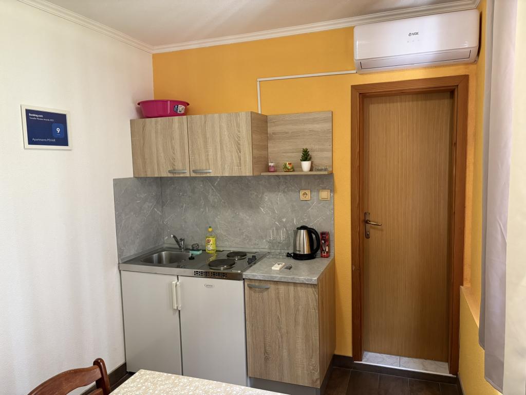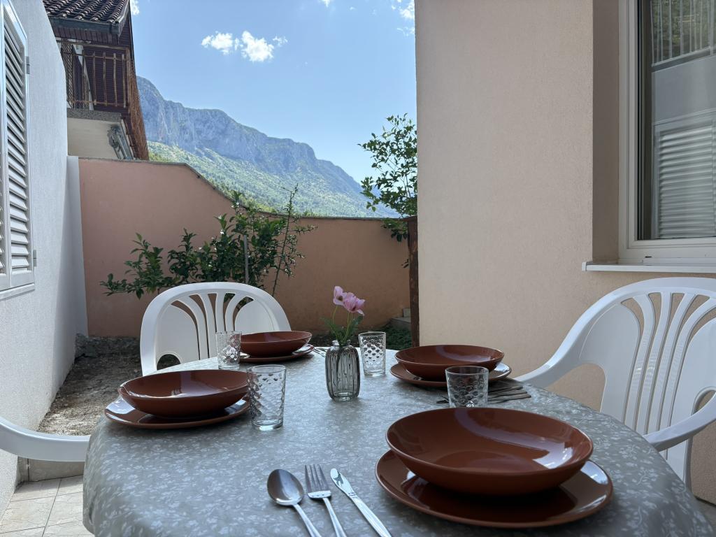 Makarská riviéra, Podaca. 6 studiových apartmánů a 3 apartmány se nacházejí v Podaci, 70 kroků od moře. Přístup na pláž bez schodů, 200 metrů. Centrum města, obchod, pošta, dětský park a autobusové nádraží jsou vzdáleny pouhých 200 metrů. Bezplatné Wi-Fi a klimatizace v každém apartmánu.