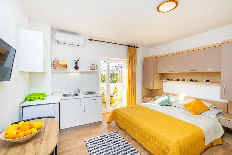 Apartmány se nacházejí na klidném místě 50m od moře. V blízkosti jsou obchody, pošta a zdravotní zařízení. Parkování je zajištěno. Wi-Fi a klimatizace v ceně.