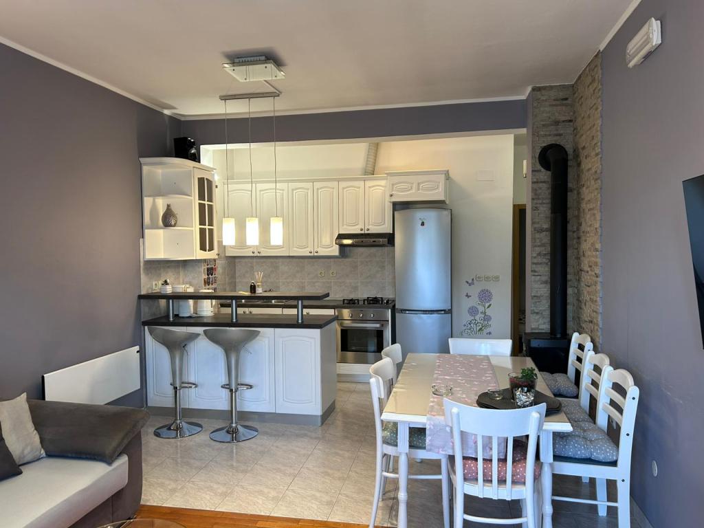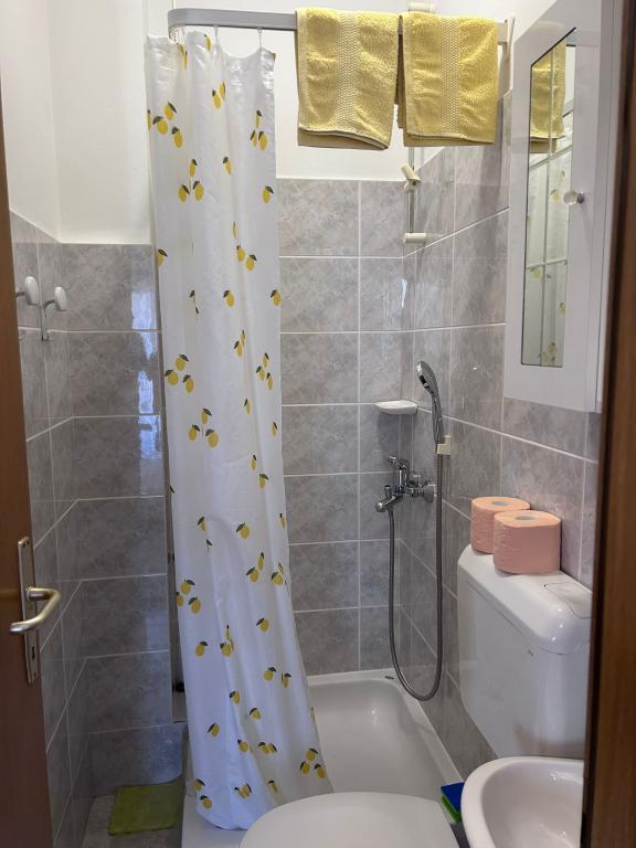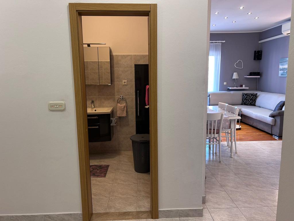 Plně a moderně vybavený byt se nachází v rodinném domě, v klidné čtvrti. Je to 3 minuty chůze na pláž, trh, restauraci, lékárnu, centrum... vše je v docházkové vzdálenosti. Apartmán má dva dvoulůžkové pokoje, jeden jednolůžkový pokoj s možností přistýlky, dvě koupelny, velký obývací pokoj s centrální klimatizací a velkou terasu. Je ideální pro dvě menší rodiny nebo pro jednu větší rodinu. K dispozici je hlídané parkoviště. Rádi bychom, abyste se v našem bytě cítili jako doma. Vítejte, milí hosté!