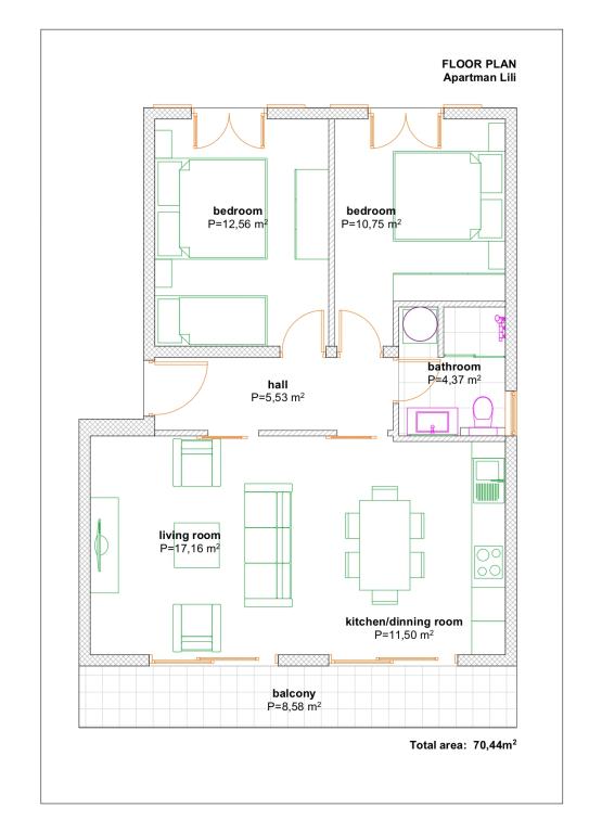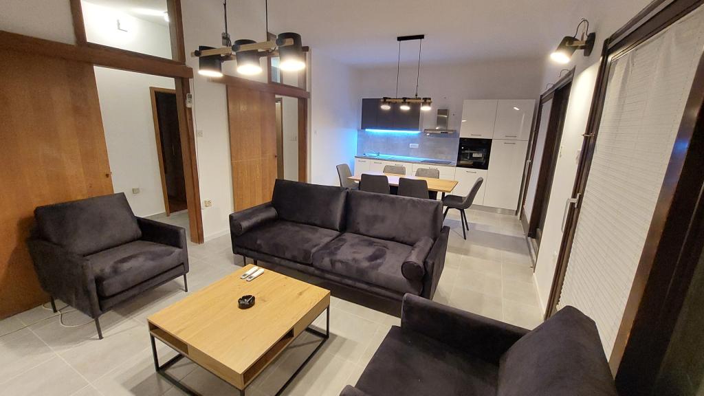 Apartmán se nachází v 1. patře rodinného domu, v samém centru Podgory, 50 metrů od hlavní pláže. V okruhu 100 m se nacházejí restaurace, kavárny, obchody, pošta, lékárna, dětský park a mnoho dalších zařízení. Skládá se ze dvou prostorných ložnic, jedné se třemi lůžky a jedné se dvěma lůžky. Oba pokoje jsou klimatizované. Apartmán se dále skládá z koupelny, chodby, prostorného obývacího pokoje s jídelnou a kuchyní. I tento pokoj je klimatizovaný. Je vhodný pro větší rodiny. Plocha apartmánu je 64 m2 + velký balkon. Apartmán má vlastní garáž nebo parkovací místo, které je zahrnuto v ceně. Veškeré energie jsou zahrnuty v ceně. Apartmán má vlastní bezplatný neomezený Wi-Fi internet. Je možné si vyžádat dětskou postýlku s ložním prádlem a dětskou židličku. Pro všechny další informace jsme vám k dispozici e-mailem nebo mobilním telefonem. BYT BYL KOMPLETNĚ ZREKONSTRUOVÁN A MODERNIZOVÁN PRO LÉTO 2024!