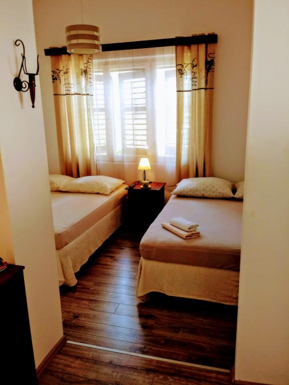 Uvedené ceny jsou pouze informativní. Apartmány mají klimatizaci. Parkování zdarma. Všechny apartmány mají bezplatné Wi-Fi. ... bezplatné používání grilu před naším domem. Dvůr je v odstínu pomerančového a citronového dřeva. Od moře 100 m. Nejbližší pláž je 300 m pěšky a nacházíme se nad přístavem - západní část Podgory. Jsme daleko od silnice. Jsme také 100 m od pobřeží, večer žádný hluk. Takže jsme v klidné části Podgory. Ideální pro rodiny s dětmi! Dům má výhled na moře. V blízkosti 200 metrů je centrum města, kavárna, obchod a restaurace.