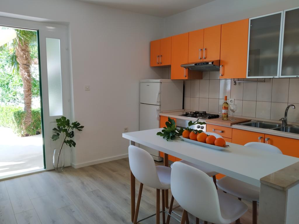 Komfortně zařízené a plně vybavené apartmány v rodinném domě v klidné části Podgory; jen 3 minuty chůze od centra města a pláže. Dům je obklopen zahradou a každý apartmán má velkou a pěkně zařízenou terasu.