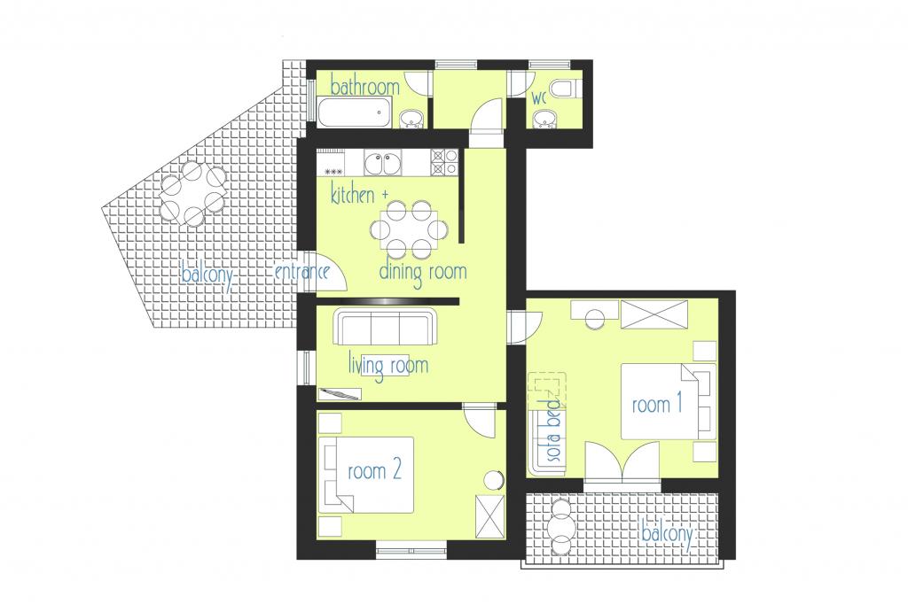 Apartmán pro dvě osoby se dvěma přistýlkami (50 m2)