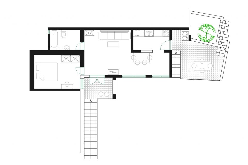 Apartmán pro čtyři osoby s jednou přistýlkou (55 m2)