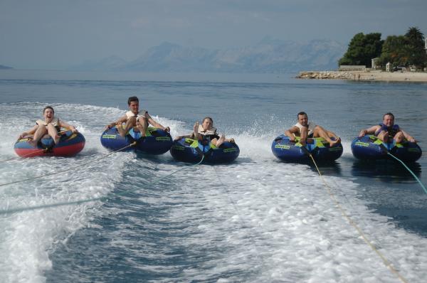 Pobytová taxa je v ceně.Nabízíme možnost zapůjčení loděk Quick Silver 630 s motorem 150 hp Suzuki, 5m člunu s motorem 5HP, šlapadla, vodní lyžování, paragliding, banán na koni, trubky, velkýma hořlavé, aqua park. Pro naše hosty, cena vodních sportů je o 20% menší.