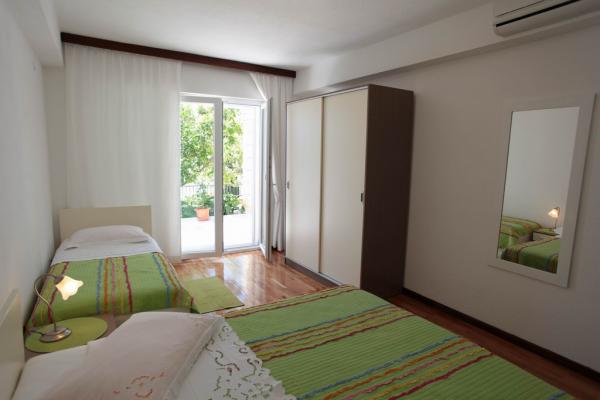 Apartmány se nachází v klidné části Podgory, jen 300 m od moře. V blízkosti se nachází oplocená hřiště, které mohou hosté využívat zdarma. Apartmány mají velkou terasu s výhledem na moře a plynový gril. Jsou krásně zdobené a mají klimatizaci, TV, rychlovarná konvice, kávovar, topinkovač.