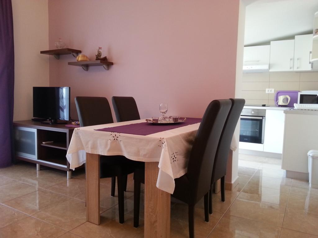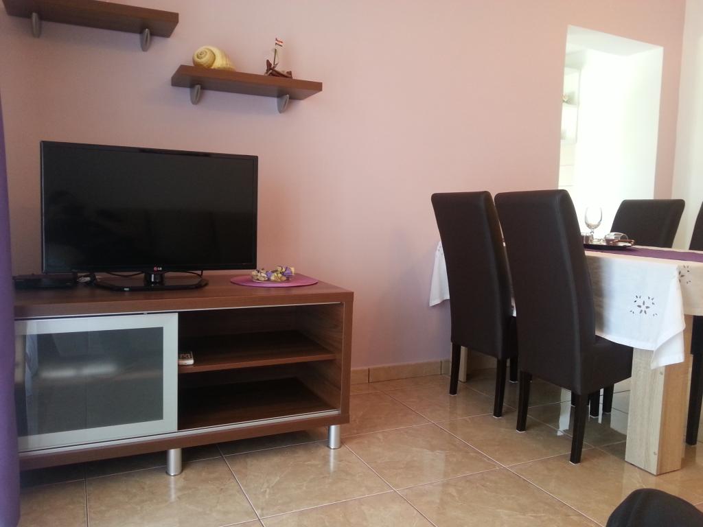 Apartmán Nešo se nachází v Podstrana.Podstrana je malé turistické místo nacházející se na půli cesty mezi Splitem a Omišem.Vzdálenost od Splitu je 8 km. Apartmán se nachází přímo u moře, to znamená 5 m od moře. s klimatizací,mikrovlnnou troubou,rychlovarnou konvicí,myčkou a dalšími nezbytnostmi.Každý pokoj má vlastní balkon (pokoj,kuchyň a obývací pokoj).Apartmán má kapacitu 4 osoby,t.j.2+2.plážová lehátka,slunečníky,gril,internet jsou hostům k dispozici.(Wi-Fi), satelit, anténa a parkovací místo.V blízkosti apartmánu se nachází dětské hřiště (300m) které je vybaveno doprovodným zařízením.V apartmánu není povolen vstup se zvířaty.