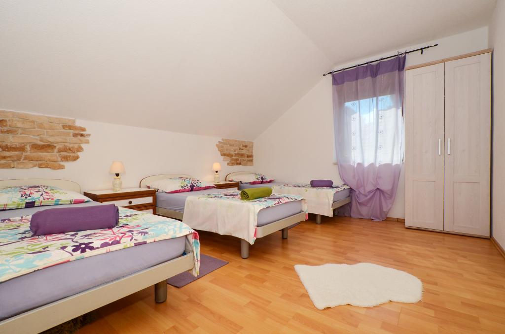 Doporučuji všem, kteří si vyberou velkou skupinu (7 osob) za velmi výhodných podmínek. Dvě velké ložnice, dvě koupelny a pokoj se třemi oddělenými lůžky (pro děti). Dobře vybavená kuchyň, obývací pokoj s klimatizací a TV. Všechno nové a pohodlné. Na terase je stůl a mini grill a deštník, na který nezapomenete
