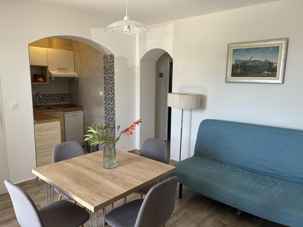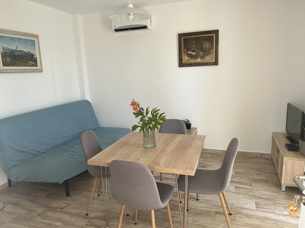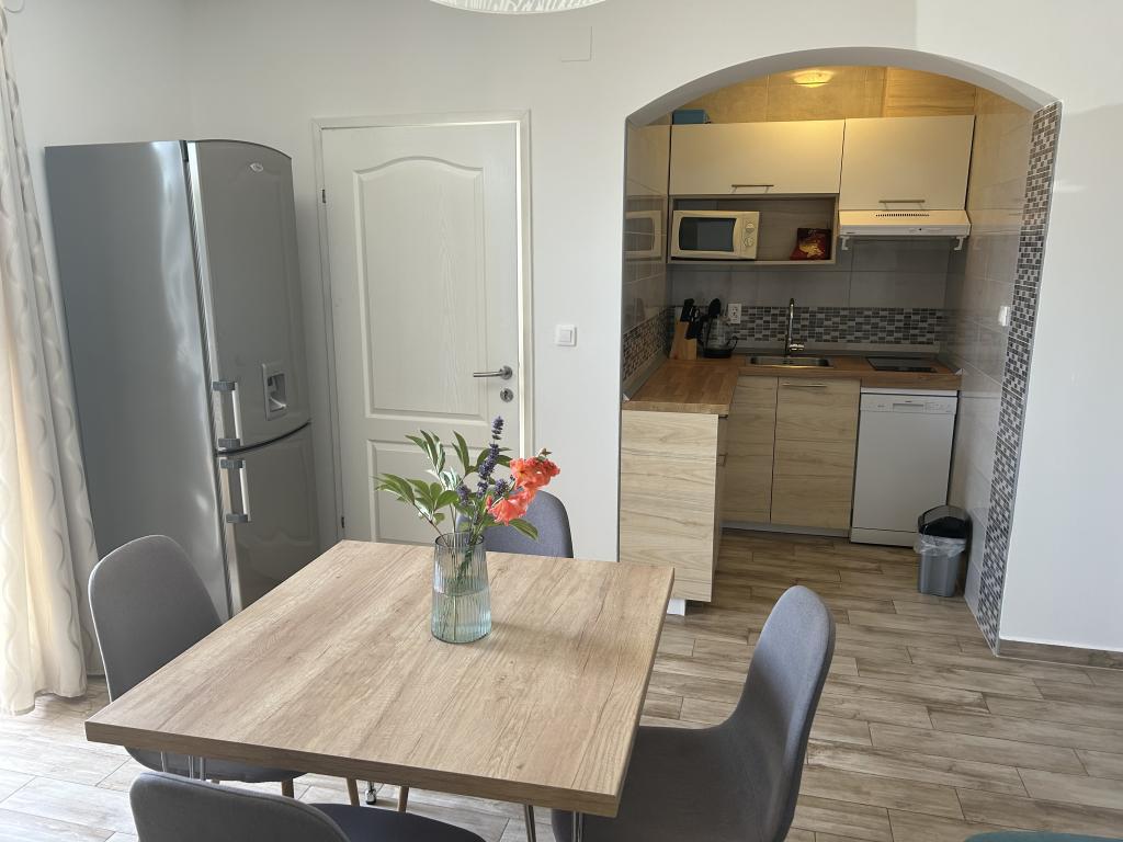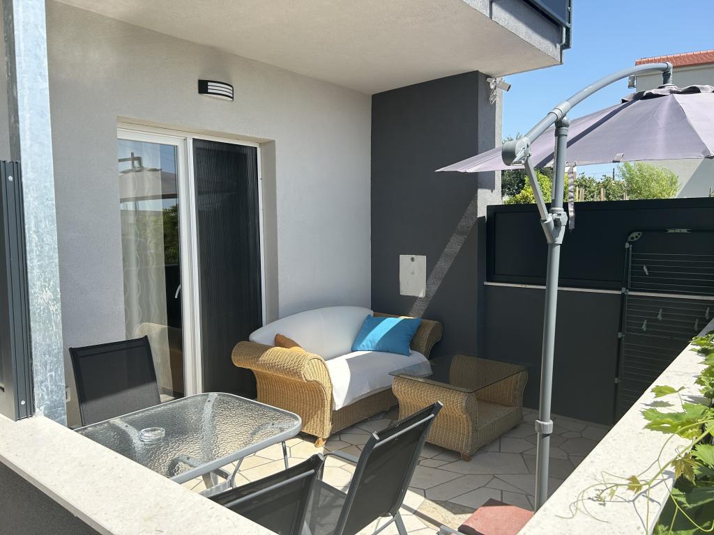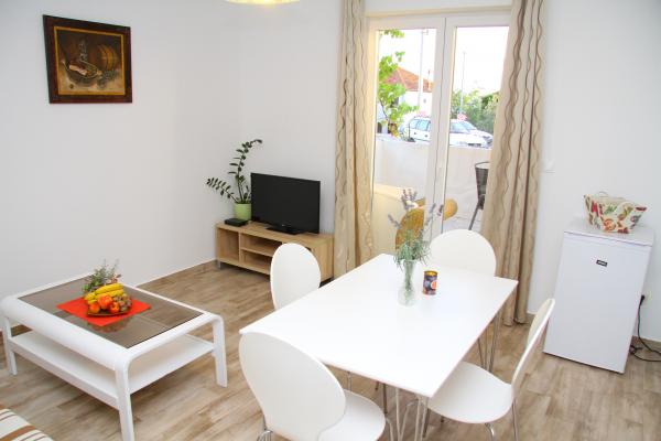 Zbrusu nové apartmány 200m. od moře a plaže.Nalaze v přízemí s velkou terasama.Glavna silnice nebo dálnice se nachází 150 m. umožňuje klidnou a relaxační atmosferu.Apartmani se skládá z obývacího pokoje, kuchyně, koupelny a ložnice s manželskou postelí a jedním samostatným lůžkem, a čtvrté lůžko je v živém sobi.Kuhinja je vybavena všemi spotřebiči, které splní všechny potrebe.Ispred každý apartmán má velkou terasu s dalšími stolom.Svi hosté mají možnost používat ekologické ovoce a zeleniny z našeho okolí vrta.Parking je soukromý a je umístěn v úrovni bytu bez obstrukcí, která je ideální pro lidi s invaliditetom.Ambient je ideální pro rodiny s dětmi a skupiny přátel.