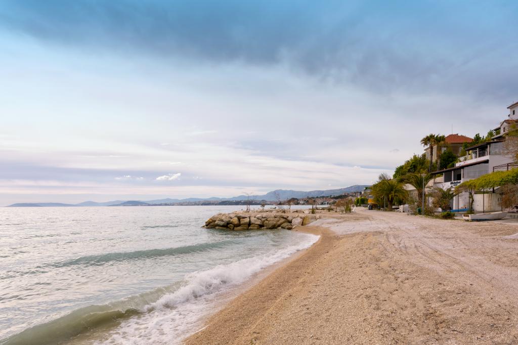 Přímořské apartmány s krásným výhledem na západ slunce a pláže táhnoucí se podél pobřeží na letní procházky. Byt se nachází 5 metrů od moře a bezpečné parkovací místo. Tato nemovitost se nachází 20 minut od centra Splitu. Sanitka, lékárna, pediatři, stomatologie a hasiči jsou v blízkosti. Turistické informace se nachází 3 km.