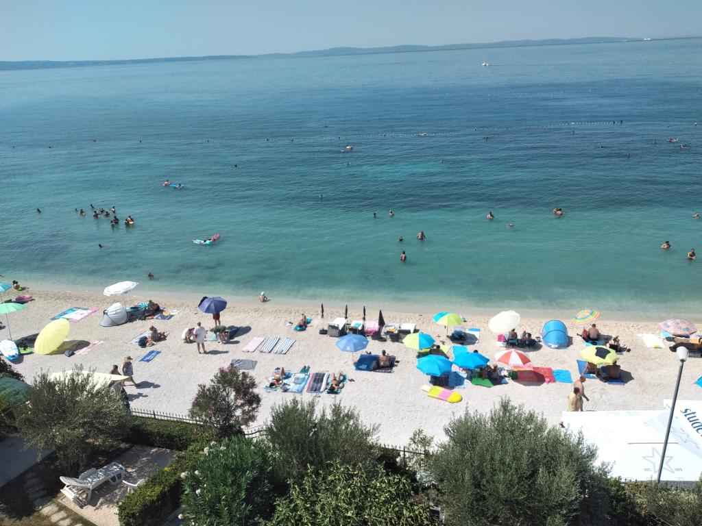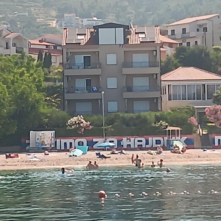 Byty cappuccino v části rodinného domu (postaven 2013 g.) Se nacházejí v klidné letovisko Podstrana 8 km od Splitu. Dům se nachází v těsné blízkosti pláže, která je dosažena po mé příjezdové cestě. Všechny apartmány mají balkon s výhledem na moře a okolní ostrovy, a můžete si vychutnat svou ranní kávu nebo večer s krásný západ slunce. Tyto apartmány mají klimatizaci, satelitní TV a Wi-Fi připojení na internet. Na pláži si můžete pronajmout vodní lyže, pedalinke, člunu, vodní lyžování a autokemp v okolí mohou půjčit jízdní kolo nebo škola potápění. Pobřežní promenáda je dlouhá několik kilometrů.