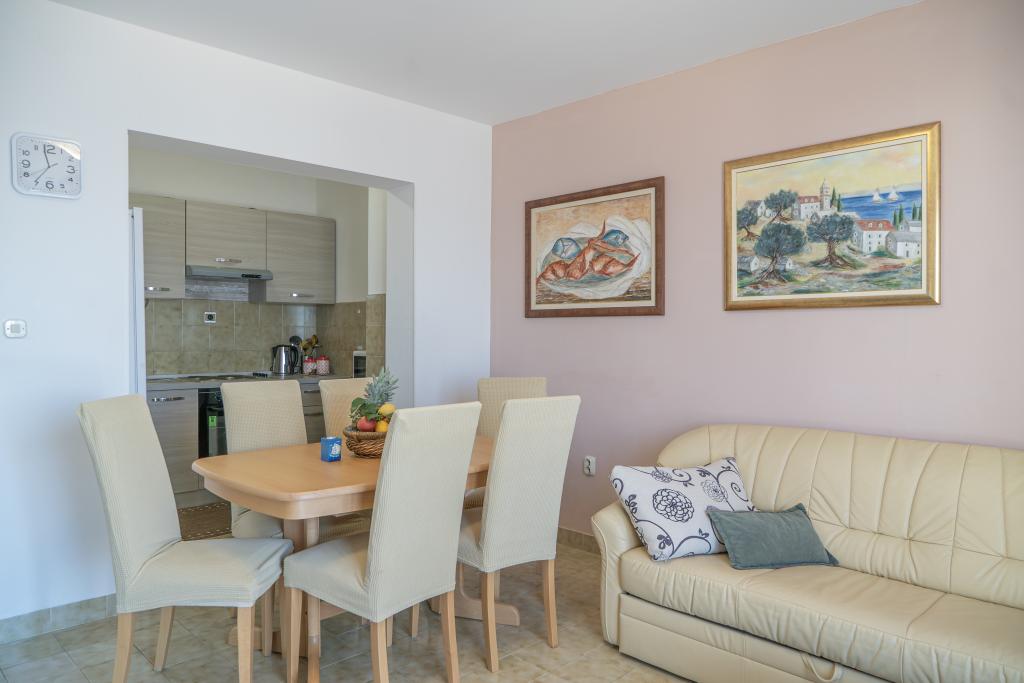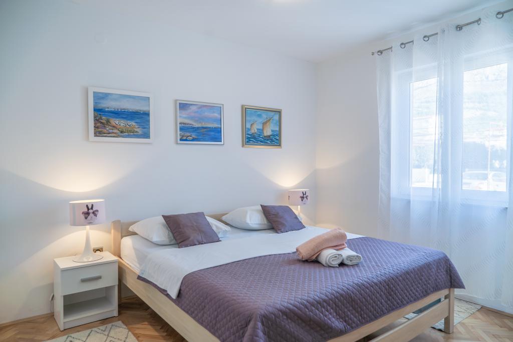 Plně vybavený byt se dvěma ložnicemi, dvěma klimatizacemi, velkým balkonem, jídelnou, kuchyní a prostornou koupelnou. Nachází se ve Sv. Martina Podstrana k moři, s krásným výhledem na ostrovy a město Split. Pláž je oblázková, vhodná pro koupání dětí s velkou promenádou u moře. Je ideální pro rodiny s dětmi, protože silnice není zkřížená. Dvůr je oplocen, kde je parkoviště a gril. V blízkosti jsou obchody, restaurace, pizzerie, kavárny, obchody, lékař, lékárna a zubní ordinace, nedaleko Splitu s kulturními památkami chráněnými UNESCO - Šibenik, Trogir, Solin a Omiš. Apartmán s je velký a pohodlný a má 4 lehátka. Byt je prostorný a pohodlný s velkou terasou a slunečníky s krásným výhledem na moře pouhých 30 metrů od moře, přijďte se přesvědčit. nedaleký tenisový kurt, jezdecký klub, cyklistické stezky, výlety lodí na okolní ostrovy, místní jídlo, čerstvé ryby, měkkýše a další speciality