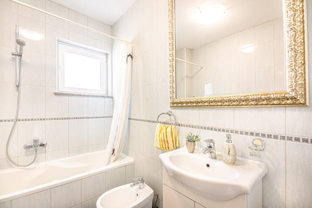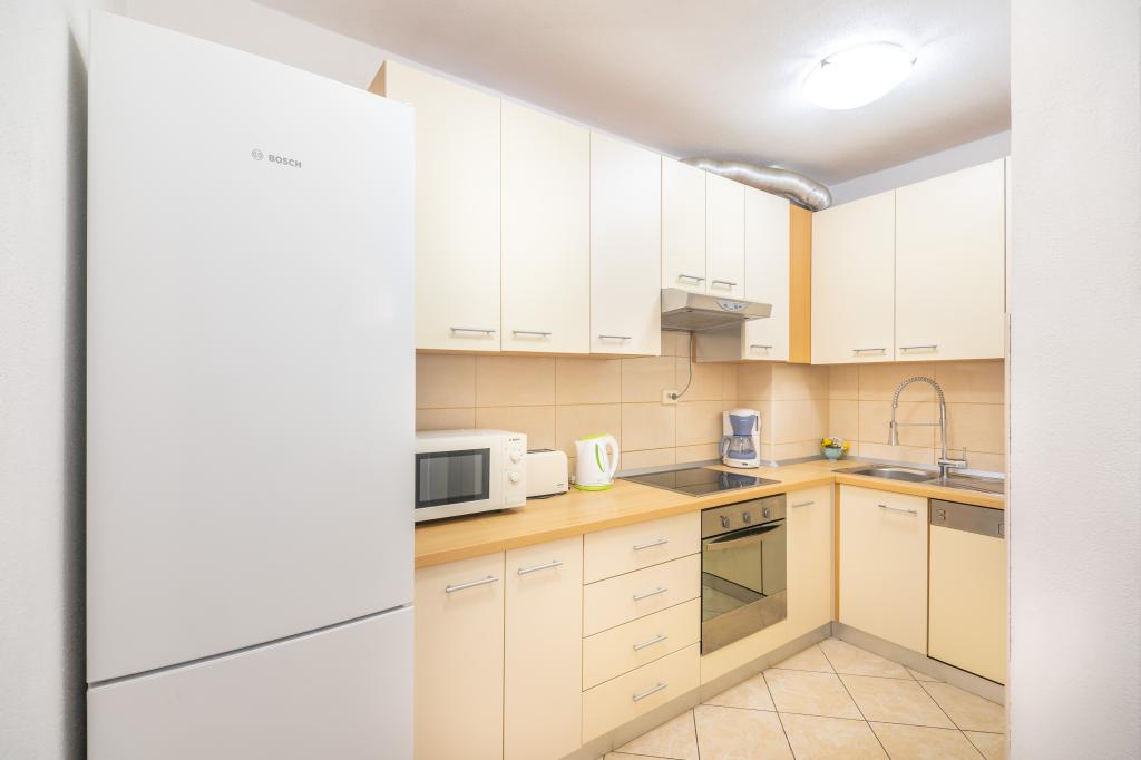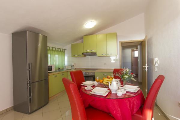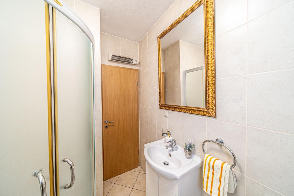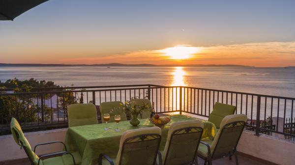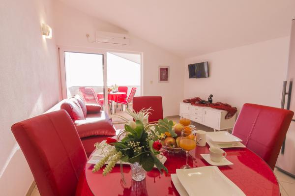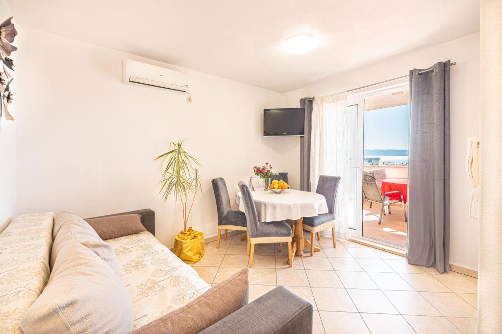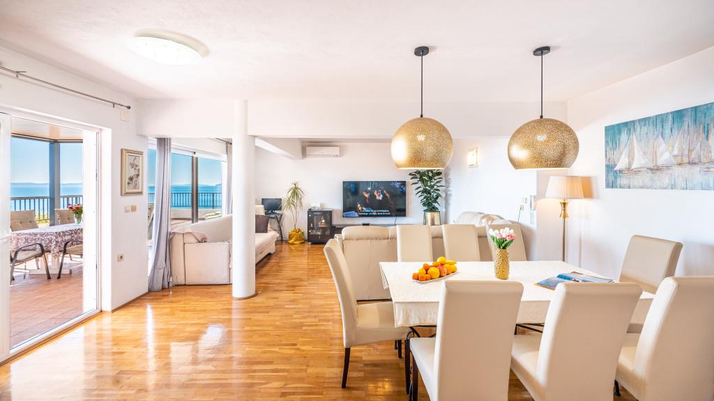 Byt se nachází v klidné turistické město Podstrana, v těsné blízkosti moře. Vše je blízko, obchody, rybí trh, supermarket, směnárna, sportovní centra, golfových hřišť, hotelů, restaurací. Byt má velkou terasu s krásným výhledem na moře, ostrovy a plavců.
