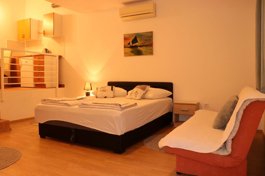 Hostitelé jsou úžasní mladí lidé. Ubytování je doslova u moře, vyjdete ven a jste na pláži s lehátky a slunečníky zdarma. V podstatě je reklama na Apartmanija důvěryhodná, všechny informace jsou správné a nebudete zklamáni, až přijedete. Gratuluji, vše je vynikající.
