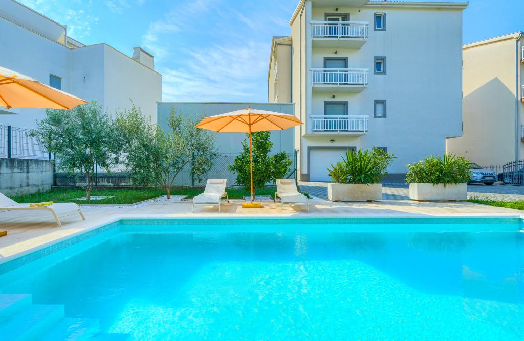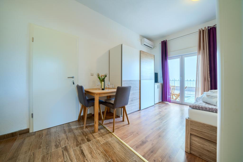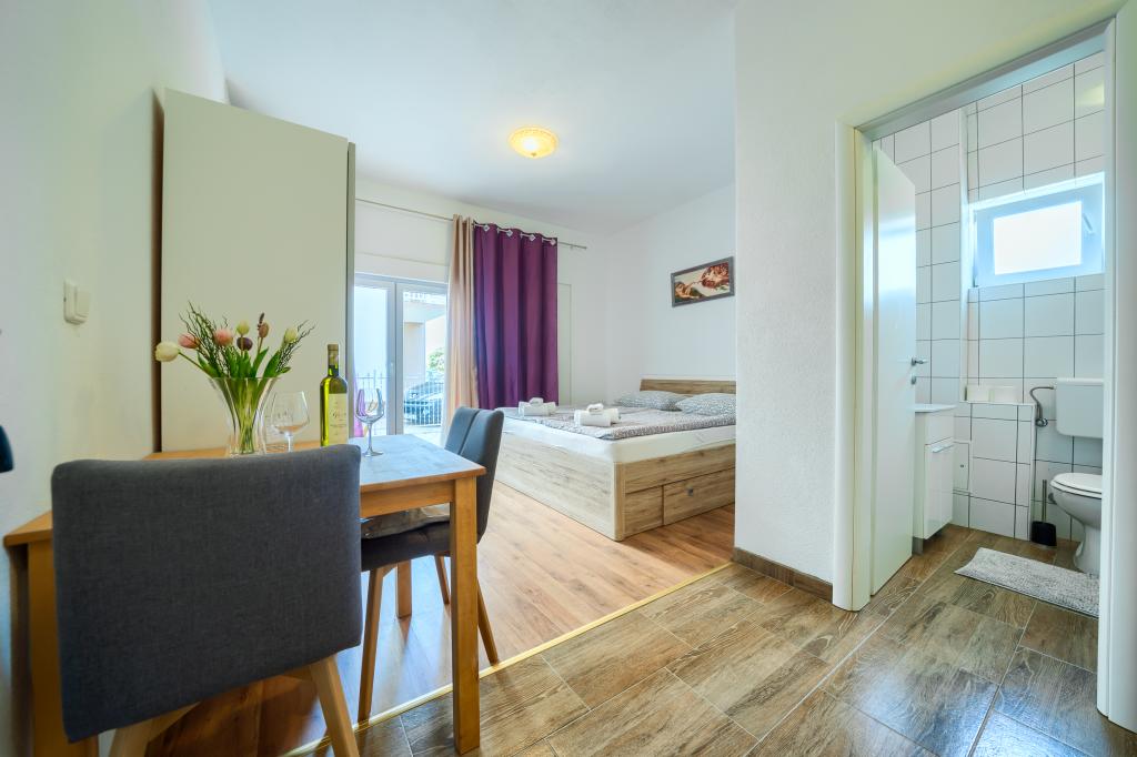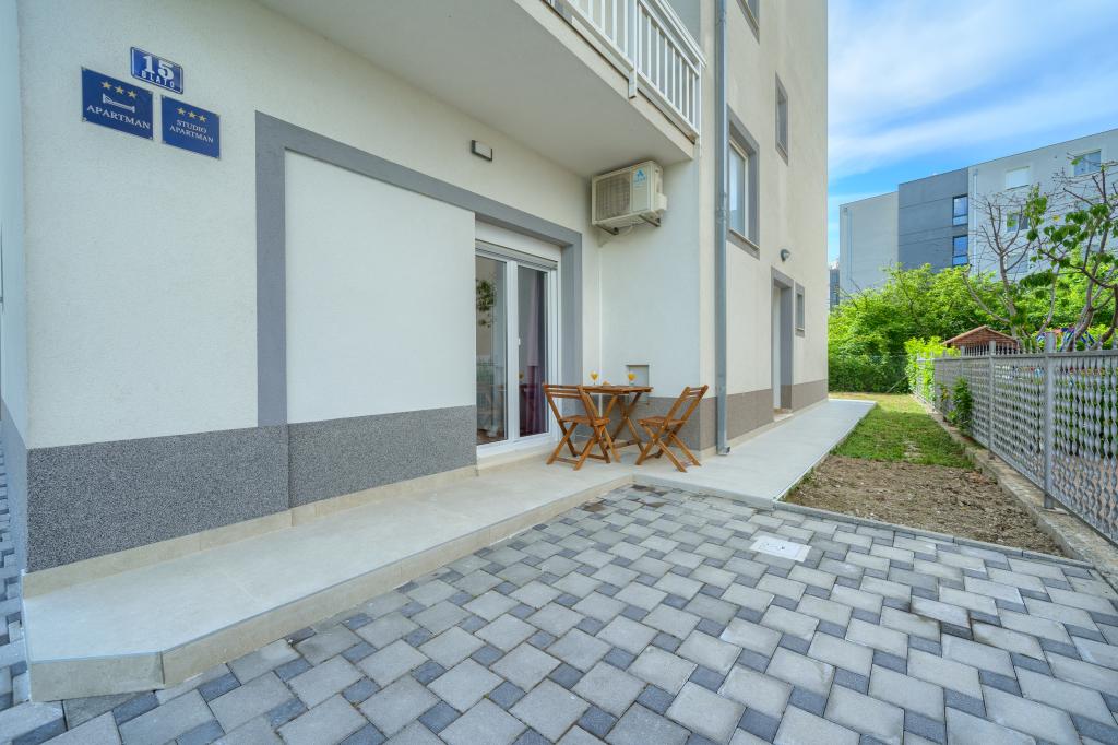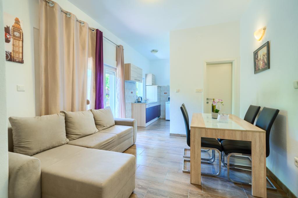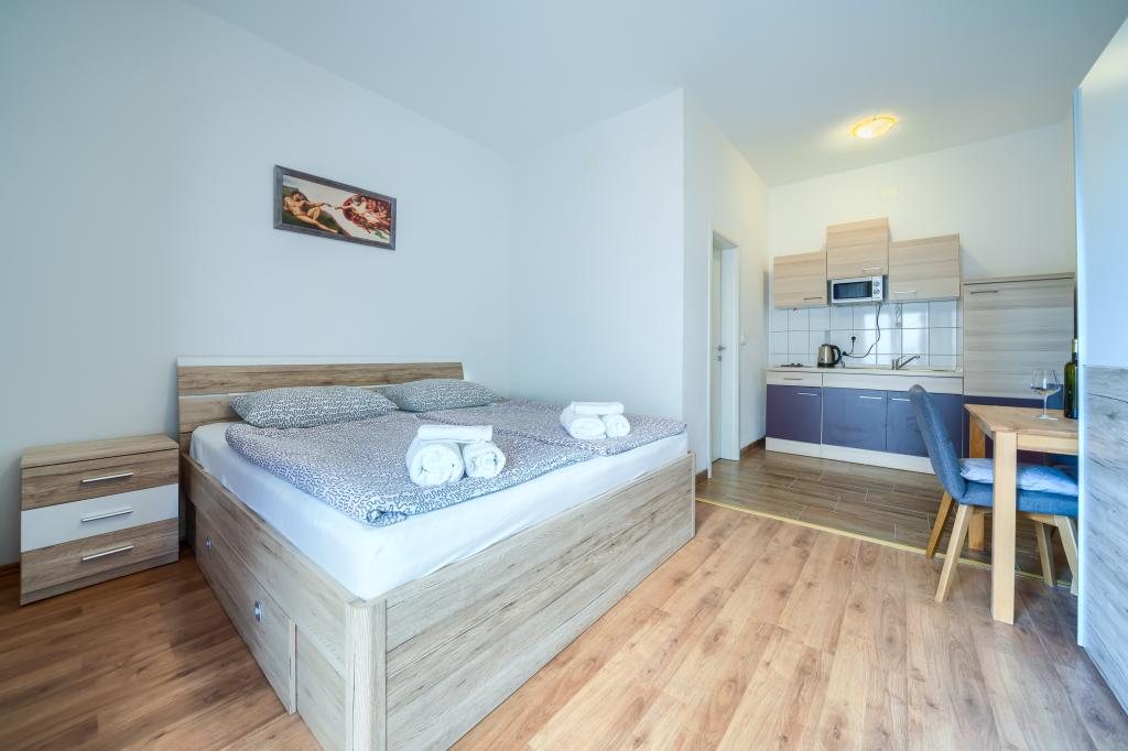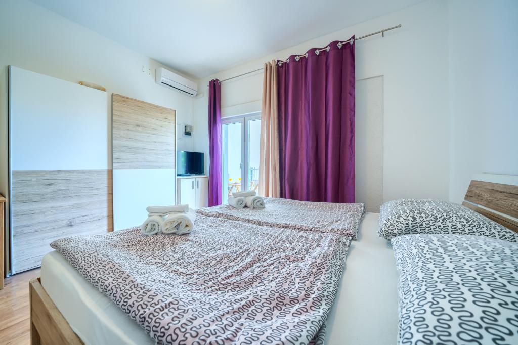 Nové a moderně vybavené apartmány v klidné lokalitě, 200 m od moře. Objekt se nachází 5 minut chůze od 3 oblázkových pláží, kaváren, obchodů, restaurací, lékáren, lékařů a lékáren. Všechny jednotky jsou vybaveny klimatizací, TV, jídelním koutem, koupelnou a terasou. Nový bazén o rozměrech 8x4 m je k dispozici výhradně pro hosty apartmánů.