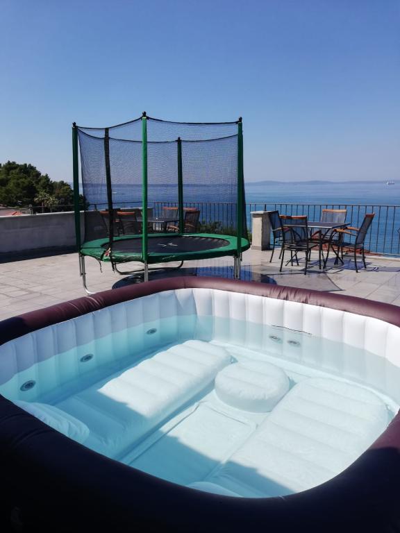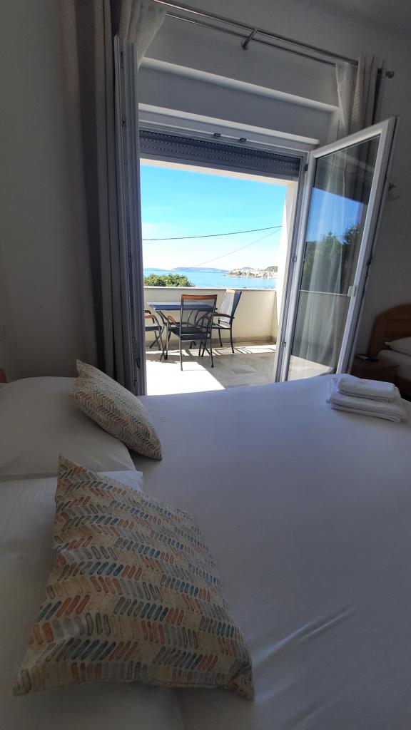 Luxusní velký čistý apartmán s krásným výhledem na moře. Apartmán je plně vybaven. V každém pokoji je klimatizace. Má dvě terasy. Jedna vnitřní a druhá je venku. Každý apartmán má k dispozici gril a jakuzzi, venkovní sprcha, lehátka. Všechny apartmány jsou s výhledem na moře. Terasa na střeše má nejkrásnější výhled. Pláž je blízko 2min. pěšky. V blízkosti na pláži je několik restaurací. V blízkém okolí jsou potraviny, lékárna, pekárna….. Domácí Ivana a Mário jsou stdeční, pečliví a velmi pohostinní. Snesou vám také modré z nebe. Jsme stále v kontaktu. Jsme tady už 5x. Poprvé jsme zde byli 2018 a rádi se zde vracíme. Cítíme se tady jako doma