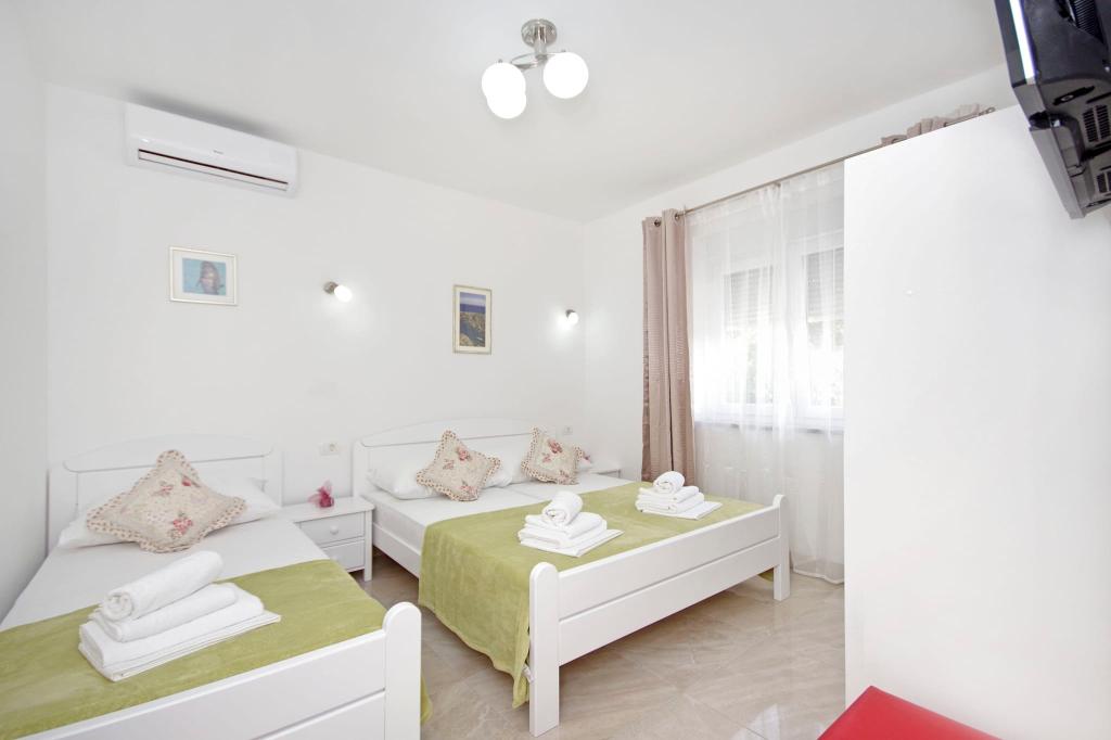 Nádherné čisté ubytování se skvělou paní domácí. Paní domácí je velmi ochotná, a přestože komunikuje v chorvatštině, snaží se vždy srozumitelně vše vysvětlit. Ubytování krásné, vypadá lépe než na fotkách. Měli jsme apartmán 7+2, každý pokoj měl své soc. zařízení se sprchou. Na terase gril, trampolína a houpačky pro děti. Luxusní ubytování, do kterého se jistě ještě vrátíme. Kousíček od moře...
