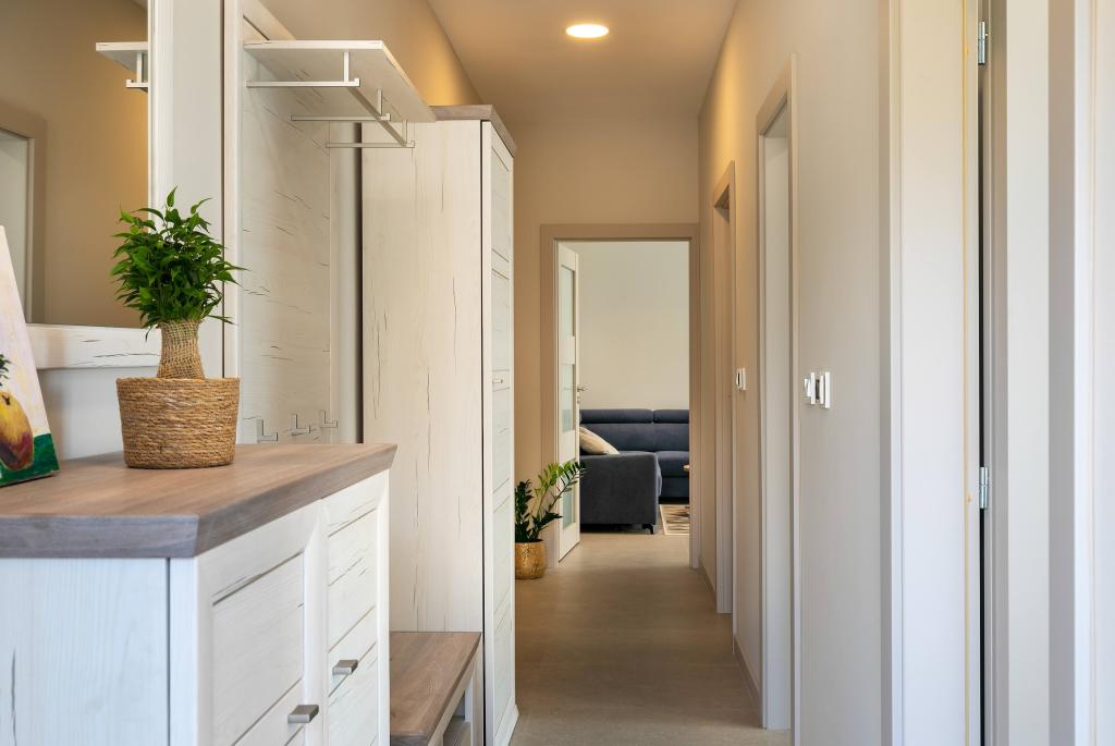 Poreč, Apartmán Nona Ana, nově zrekonstruovaný apartmán s jednou ložnicí, koupelnou, prostorným obývacím pokojem s jídelnou a kuchyní a balkonem. Kuchyně je vybavena myčkou, mikrovlnnou troubou, troubou, kávovarem s filtrem a kávovarem na espresso, rychlovarnou konvicí a toustovačem. V bytě je dále TV-SAT, Wi-Fi, fén, žehlička na žehlení prádla, v koupelně pračka. Byt je vytápěn a chlazen pomocí invertorové klimatizace umístěné v obývacím pokoji a v ložnici. Byt se nachází v 1. patře. Parkování zajištěno ve dvoře. Vzdálenost od moře je jen 900m-1000m, vzdálenost od trhu 500m, restaurace 600m, vzdálenost od centra 2500m.