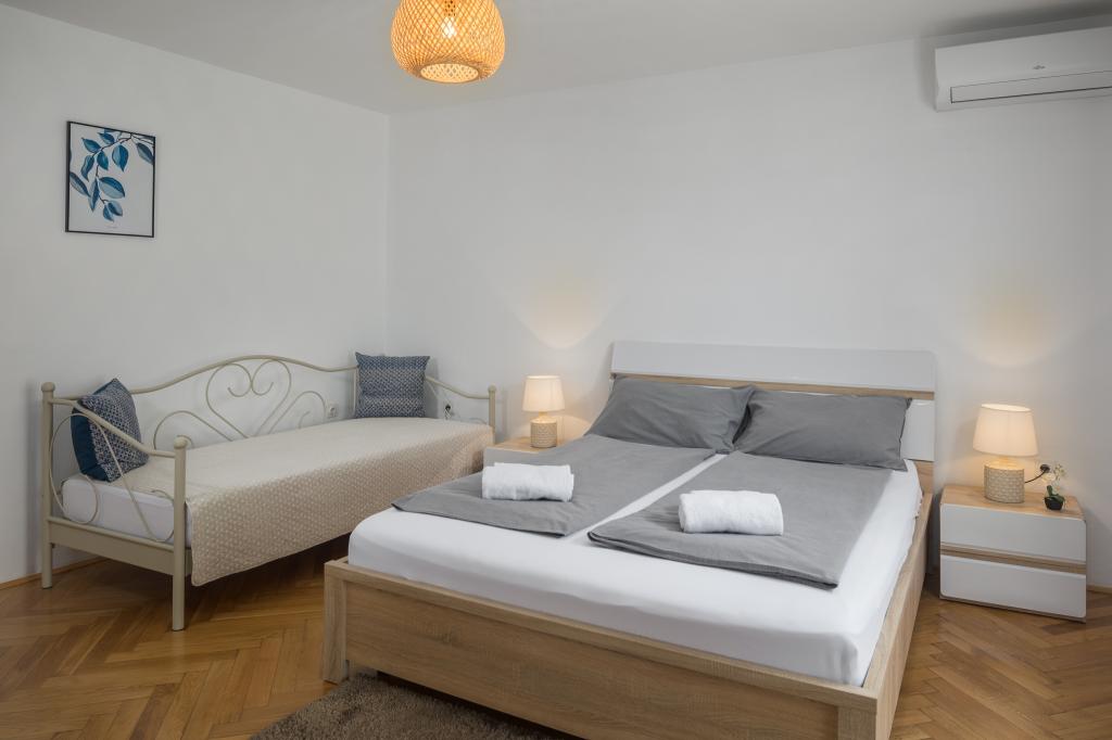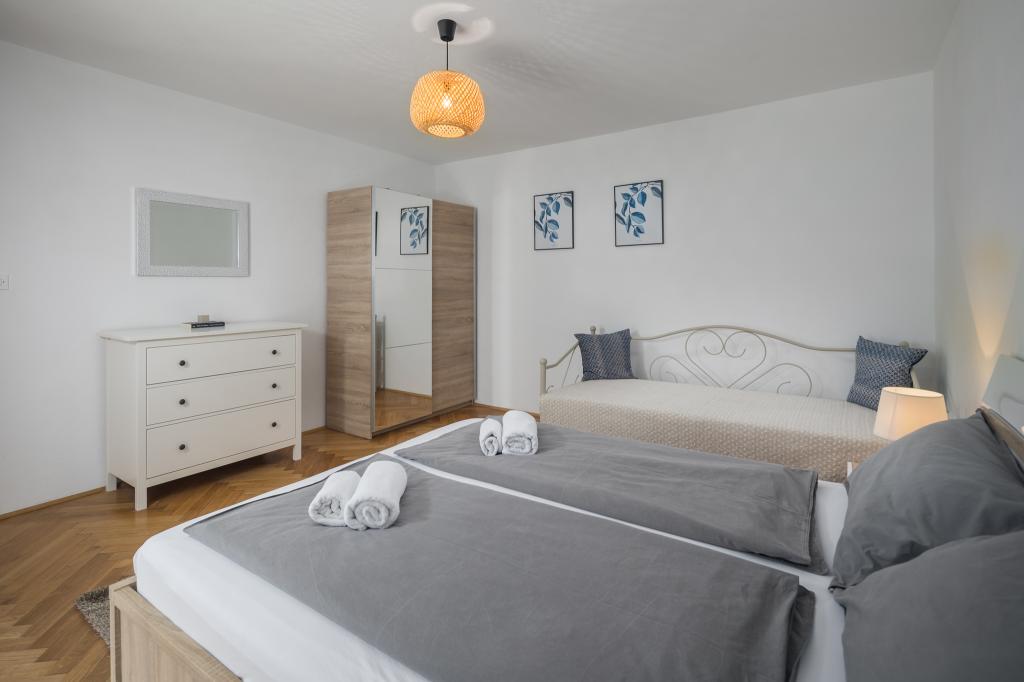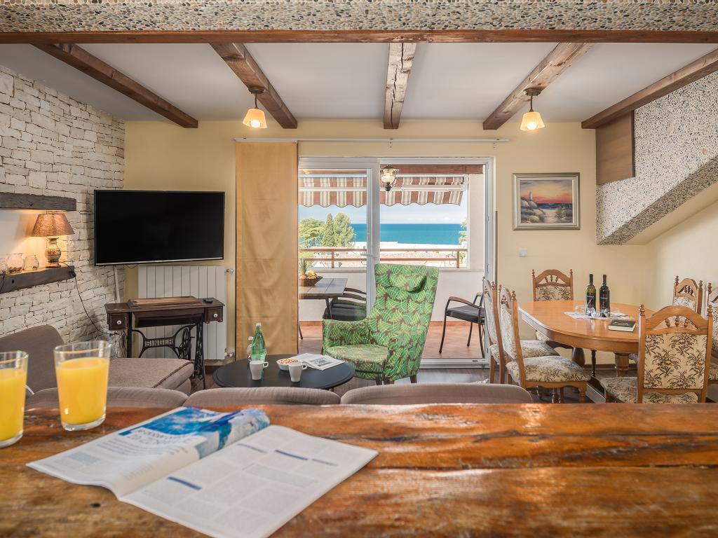 Pěkný, prostorný a čistý byt. Má 3 ložnice a větší obývací pokoj s kuchyní pro společenské setkání. Z terasy je krásný výhled na moře. Majitel je přátelský a ochotný. Výhodná poloha bytu, větší Market Plodine je v bezprostřední blízkosti a centrum Poreče také není daleko.