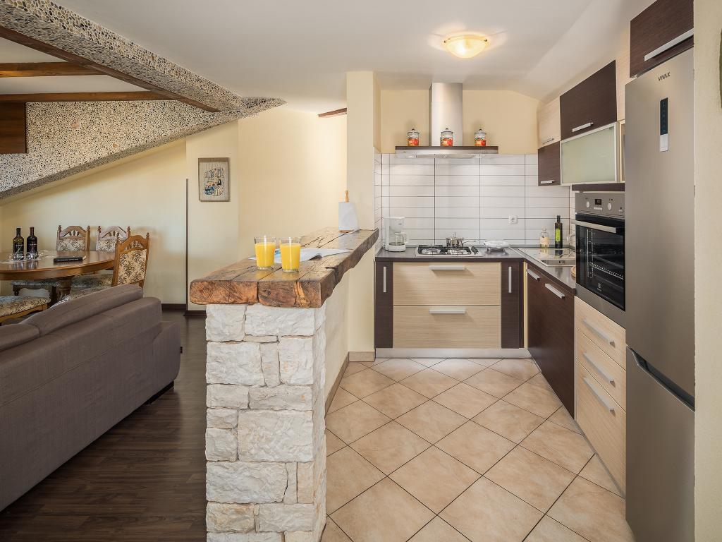 Byla to naše první dovolená v Chorvatsku a v zahraničí vůbec. Našli jsme opravdu skvělé místo a stejného hostitele Almira, který nás přivítal bosenským pivem a dobrými radami o místní gastronomii, Poreči a místech k návštěvě na Istrii. K bytu jsme neměli žádné námitky, zrekonstruovaný, vše nové a nepoškozené, plně vybavený kuchyňský kout, kuchyň, mikrovlnka, krásná velká terasa, klimatizace, velká TV, dobrá wifi. Almir byl vždy nápomocný a několikrát jsme si dlouho povídali. Každý den se ptal, zda je vše v pořádku a chtěl nám vyměnit ručníky. Na jeho doporučení jsme zašli do místního vinařství, kde jsme po ochutnání nakoupili zásobu vína a rakije. Dům je na nepříliš frekventované ulici, 5 minut chůze od pláží. 100% se vrátíme. Hvala!