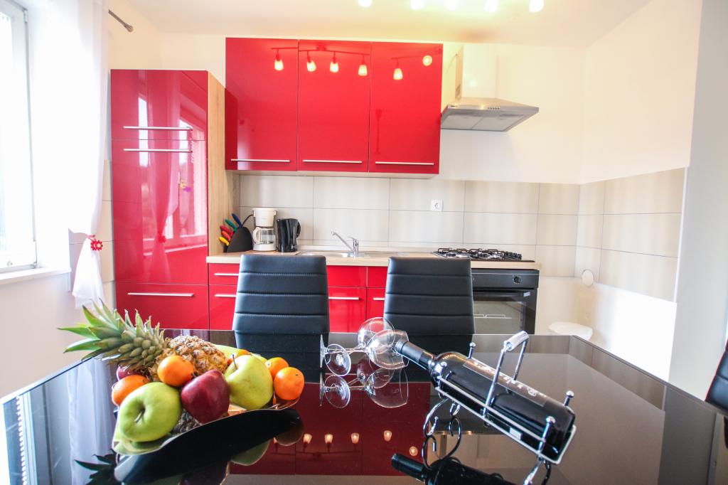 Apartment Lili je studio s oddělenou ložnicí a obývacím pokojem, kde je rozkládací pohovka pro 1 osobu, kuchyň, koupelna a terasa. Apartment Bojan je nově zařízený byt s 1 ložnicí, obývacím pokojem s rozkládací pohovkou pro 2 osoby, plně vybavenou kuchyní, koupelnou a 2 balkony. Apartment Marisa je 2-pokojový byt s obývacím pokojem s rozkládací pohovkou pro 1 osobu, kuchyní, spíží a balkonem. Apartmány mají SAT-TV a klimatizaci. Veřejné parkoviště se nachází před budovou.