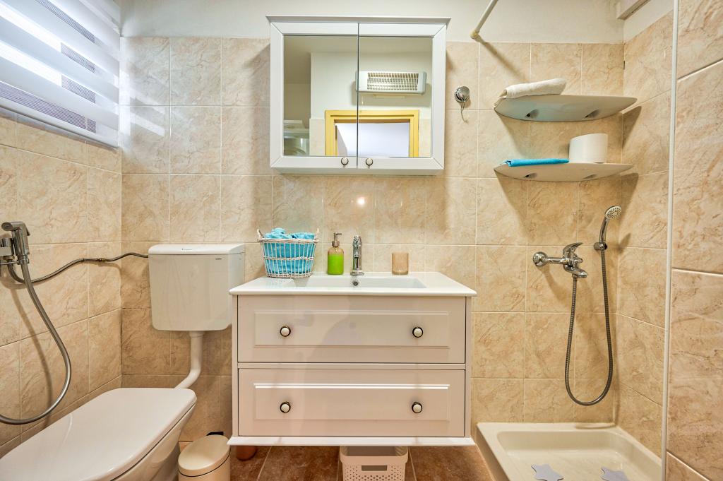 Apartmán DONATELLA se nachází mimo centrum Posedarje, na 3 mořích, Karin, Novigrad a Jaderské moře. První řada k moři s přímým přístupem na stinnou a dobře udržovanou dlážděnou pláž a molo. Ukotvení menší lodi je možné. Moře je ideálně teplé pro dlouhé koupání a relaxaci. Na pláži jsou 4 lehátka s plážovými ručníky. Krytá terasa, 32 m2, a apartmán, 47 m2, jsou jen 5 metrů od moře! Vedle terasy je venkovní sprcha s ohřívanou vodou. Parkování zdarma, kryté markýzami, pro 3 auta. Centrum a obchody jsou vzdálené kilometr. Stezky pro rekreaci a procházky s domácími mazlíčky jsou ve vzdálenosti cca. 200 m. Národní park Paklenica je od apartmánu vzdálen přibližně 25 km a je světoznámým místem pro nadšence lezení. Do národního parku Krka dojedete za hodinu. Do národního parku Plitvická jezera dojedete autem za 2 hodiny. Národní park Kornati je od Zadaru vzdálen několik hodin jízdy četnými výletními loděmi. Vrch Čelinka v Posedarje s impozantní křížovou cestou, 14 zastávkami a Poslední večeří nabízí překrásné panorama Posedarje a všech 3 moří.