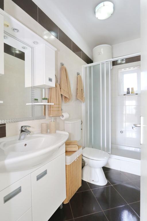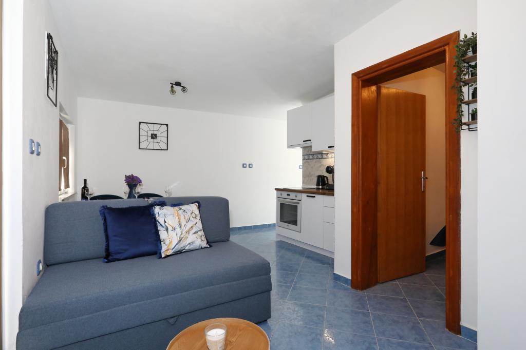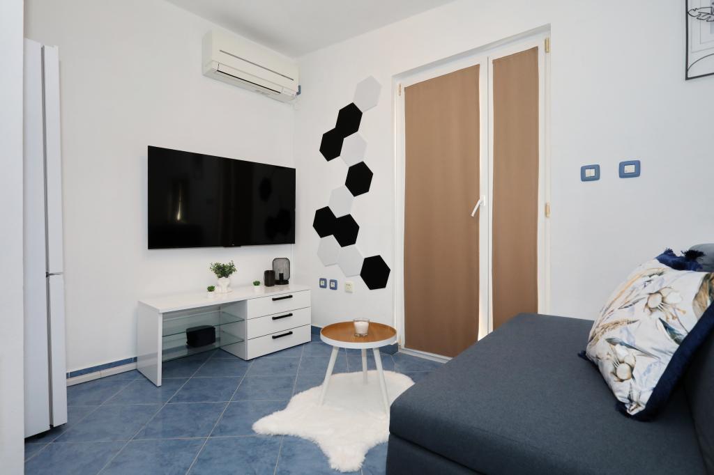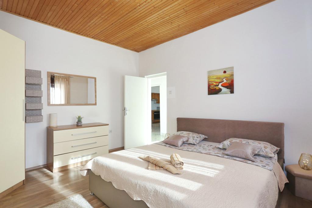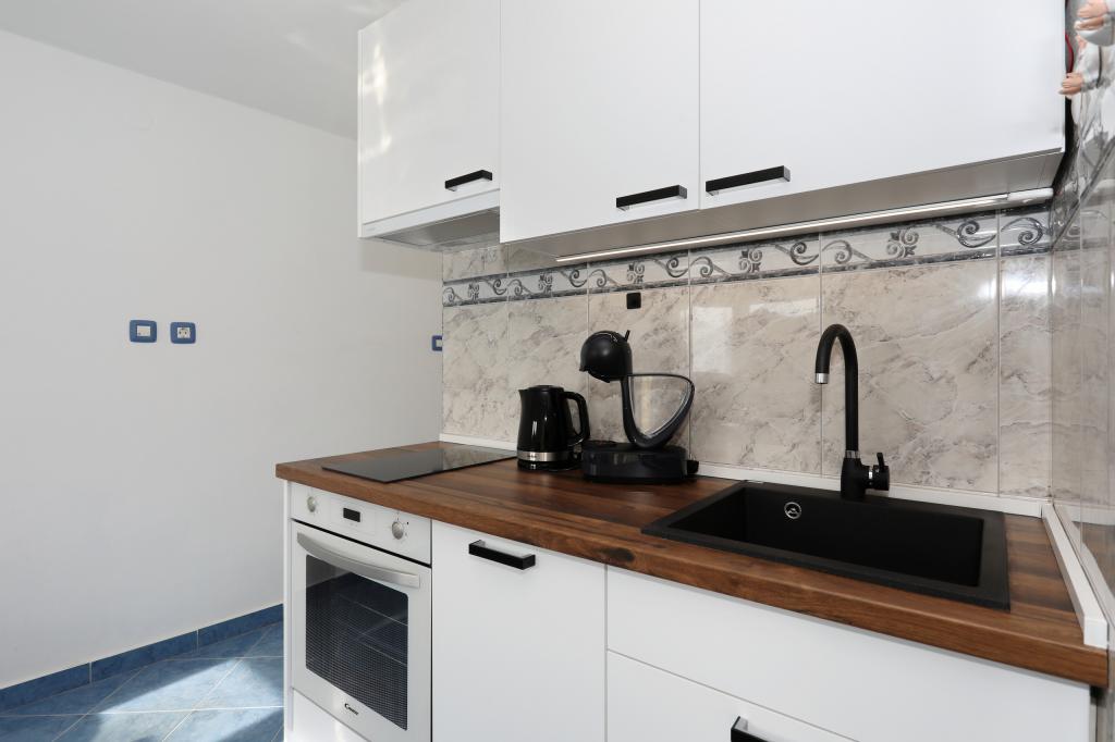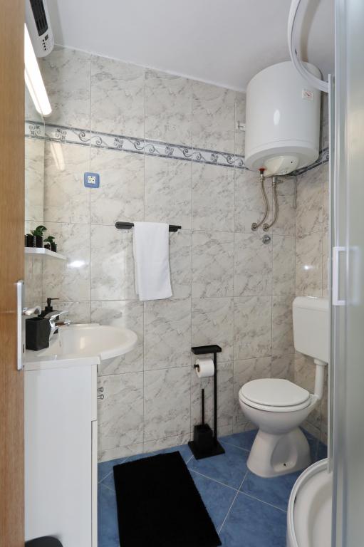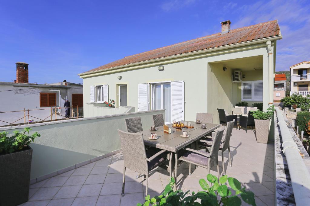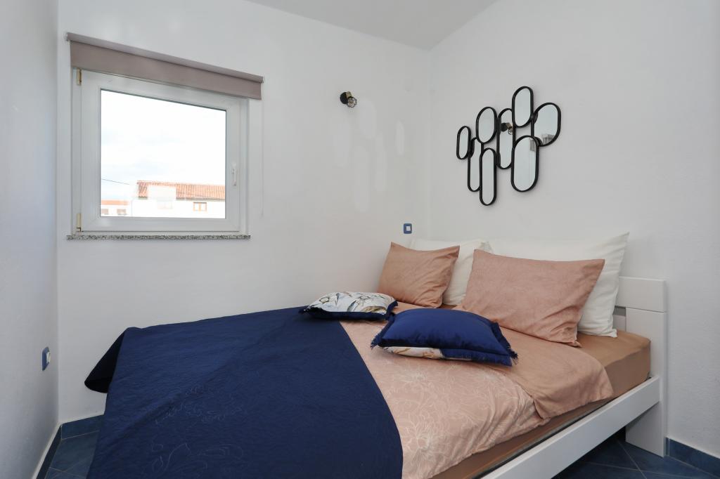 Nově moderně zařízený apartmán 45 m2 s balkonem v samém centru města a zabezpečeným parkováním před vchodem do apartmánu. Dostupnost obchodů, pekárny, řeznictví, tržnice, lékárny, pošty, bankomatu, restaurace jen cca 5 min. a kaváren, zdravotního střediska atd. Vzdálenost k první oblázkové a betonové pláži je 5-8 min. a oblázkových a stinných pláží 10-15 min. pěšky. Možnost parkování na pláži. Písčitá pláž s zabezpečeným parkováním v blízkosti plážového baru 5 min. autem. Samotné město nabízí krásné výletní místo Čelinka a nachází se v blízkosti řady národních parků Zrmanja, Paklenica, Krka, Plitvice, Kornati atd.