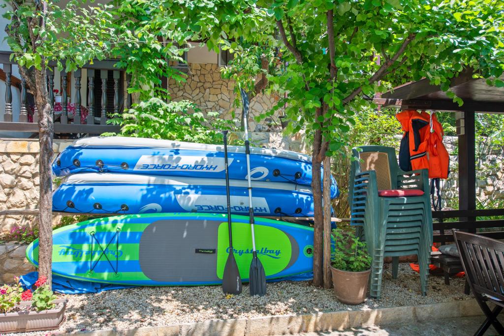 SNÍDANĚ JE ZAHRNUTO V CENĚ UBYTOVÁNÍ. Poskytujeme hostům všechny potřebné informace týkající se této oblasti i mimo ni a k dispozici jsou letáky s nabídkami exkurzí. Podrobné informace a domovní řád najdete v každé ubytovací jednotce. Host si může pronajmout 2 kajaky na kratší výlety za symbolickou cenu 2 € za hodinu. Domácí zvířata jsou povolena, je nutné oznámit a potvrdit. Na pláži máme sedadla a stoly, skluzavku pro děti ... Dvůr s parkováním se zajištěným prostorem pro 1 vozidlo pro každý apartmán. Má také gril s krytým posezením.