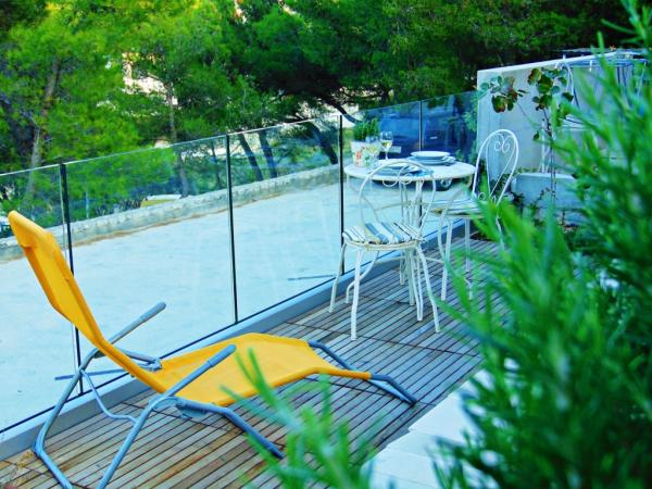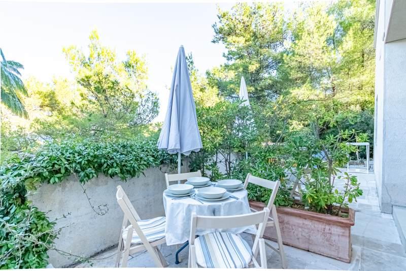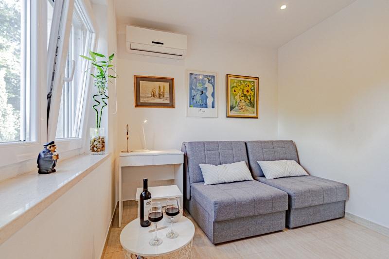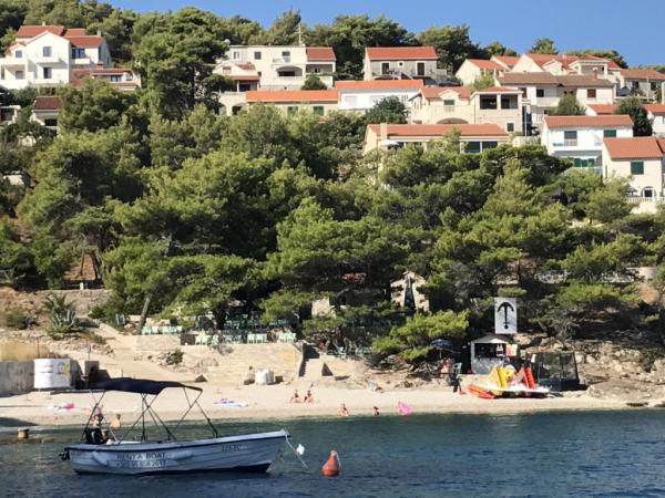 Pobytová taxa je v ceně.Vila Inga se nachází v zátoce Mala Lozna. V bezprostřední blízkosti apartmánu se nachází kavárna s barem na skále, která krásně splývá s přírodním prostředím a jejíž terasy se táhnou až k oblázkové pláži vhodné pro celou rodinu, kde je možnost pronájmu lehátek, slunečníků a sprchy. Pár kroků odtud začíná skalnaté pobřeží, podél kterého si můžete užívat moře a koupání v mnohem intimnějším prostředí. Před vilou vede cesta borovým lesem a podél moře k zátoce Lovrečina - ideální pro cyklistiku, pěší turistiku, jogging atd. 100 metrů odtud se nachází dobře zásobený supermarket s vynikající nabídkou potravin, nápojů a domácích potřeb. Do centra Postiry se dostanete asi za 20 minut poklidnou procházkou podél pobřeží.