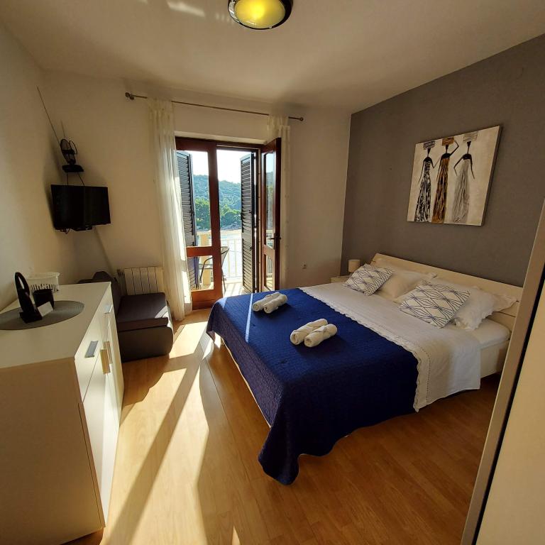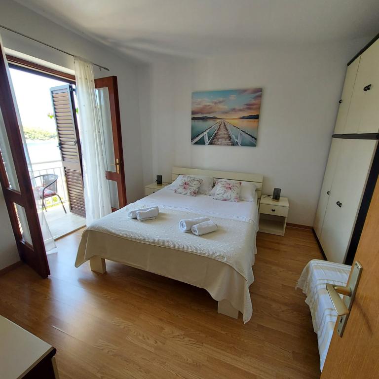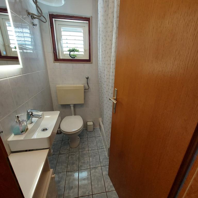 Dům je vzdálen cca 50 m od pobřeží, nejbližší restaurace cca 50 m, nejbližší obchod s potravinami cca 50 m Dům ve starém dalmatském stylu, v centru, s krásným výhledem na moře , na klidném a tichém místě, v blízkosti pláže (5-10 minut chůze), ve dvoře domu je ovocný sad, dvůr je ve stínu zeleně, dům má vlastní parkoviště. WI-FI zdarma, klimatizace. Doplňkové služby: prádlo lze po dohodě vyprat u hostitele, hostitel prodává potravinářské výrobky z vlastní produkce. (olivový olej, brandy)