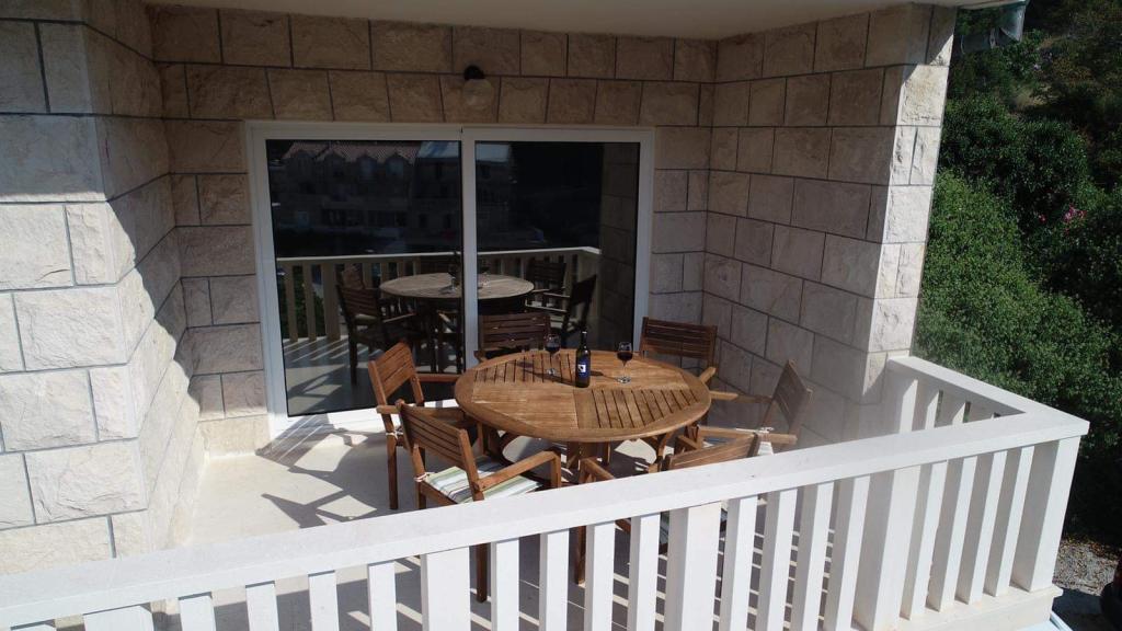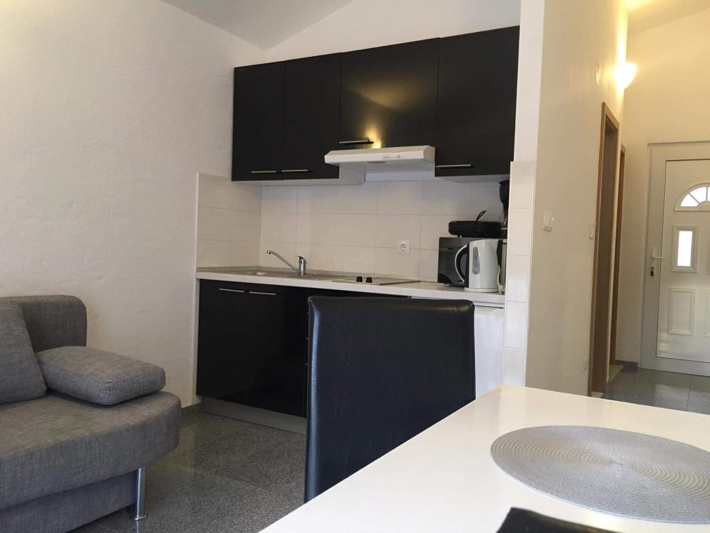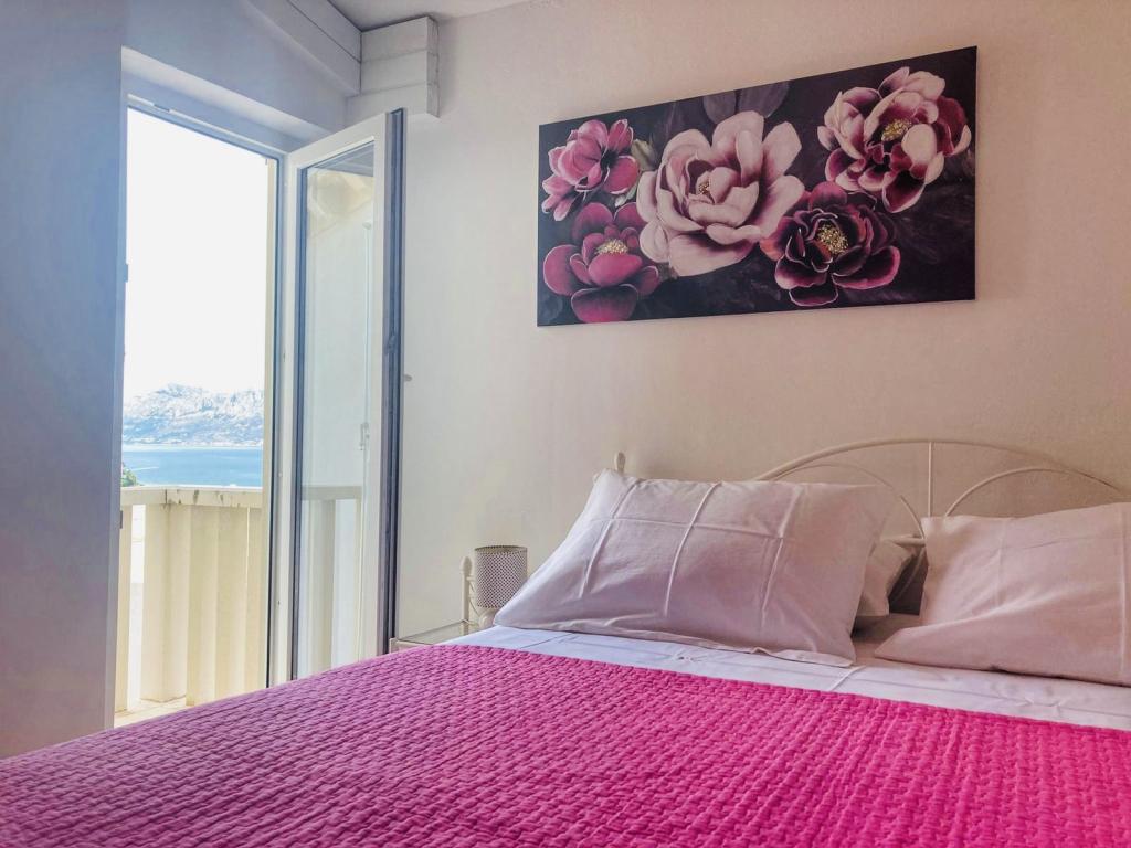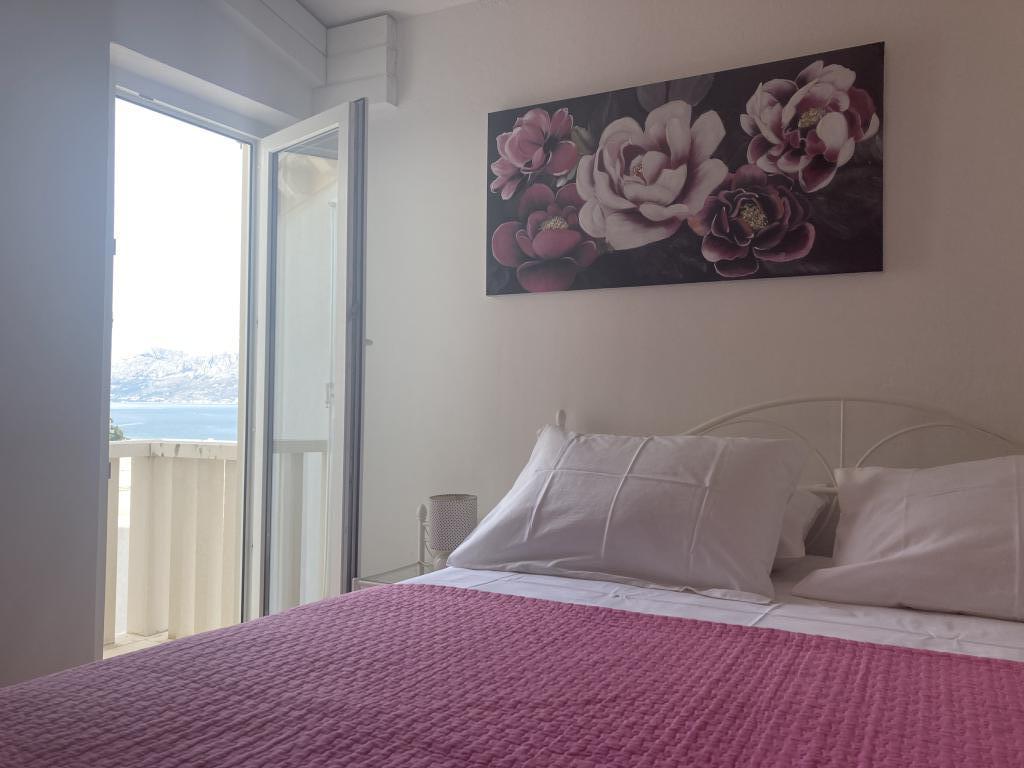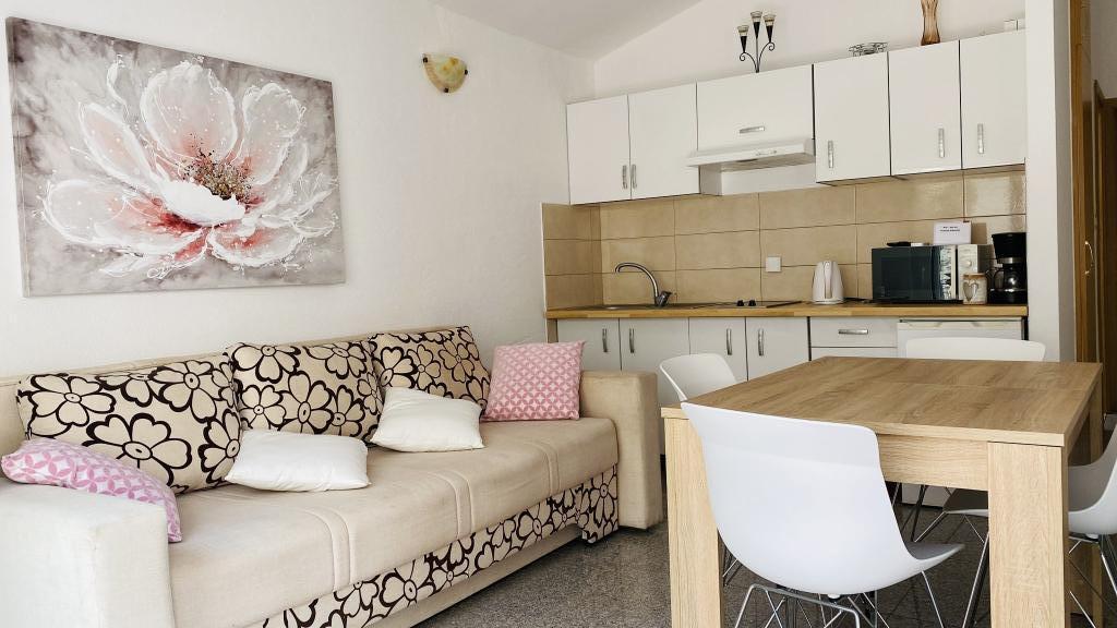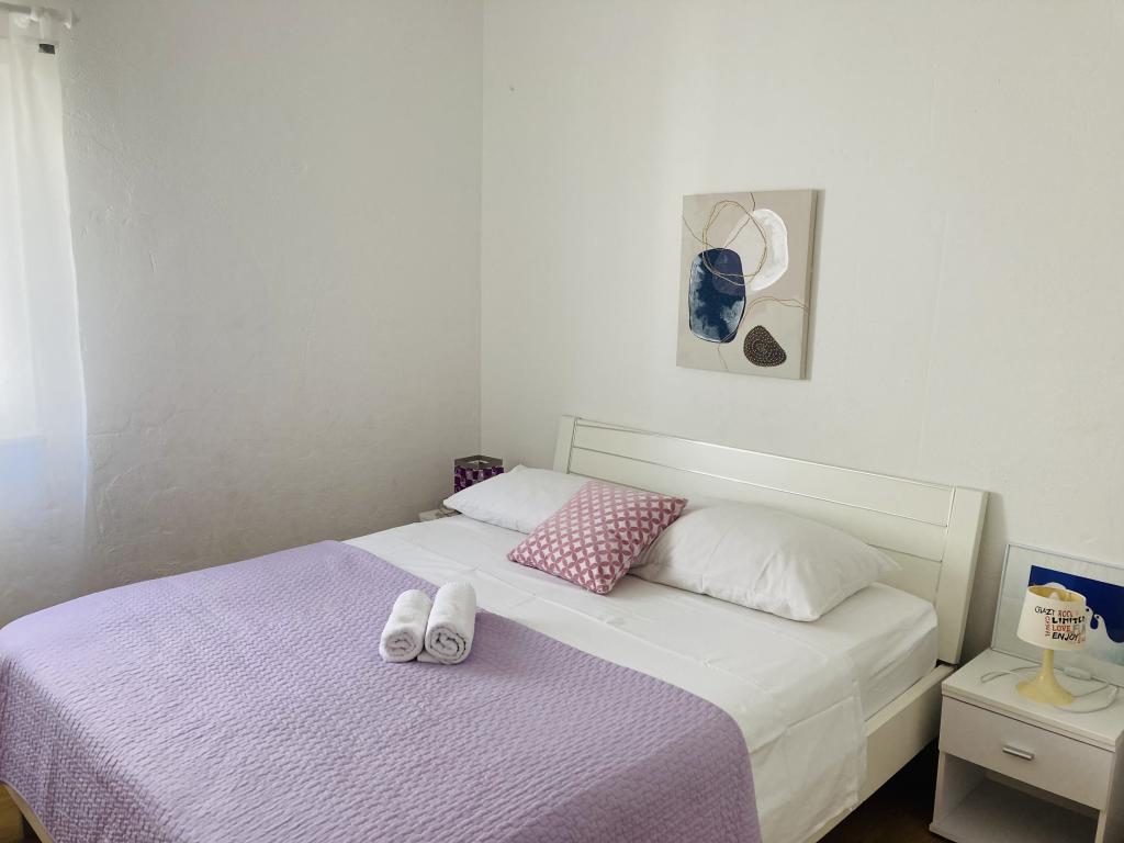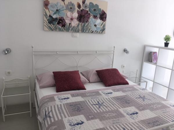 Apartmán 6 pro 2 osoby s krásným výhledem na moře, slunný a velmi prostorný se třemi ložnicemi s manželskou postelí, obývací pokoj s manželskou postelí, dvě koupelny, masážním sprchovým koutem, dvě klimatizace, indukční vařič, myčka, pračka , kávovar, varná konvice, mikrovlnná trouba a lednice. Terasa s krbem, grilem a terasou s výhledem na moře, které mají oddělené stoly a židle. Televizor v obývacím pokoji, a bezdrátové připojení k internetu je zajištěno. Je vybavena nádobí pro přípravu a servírování jídel a nápojů a příbory v přiměřeném množství. Je umístěn v prvním patře domu v centru města. To se nachází v blízkosti moře (40 m), obchod (50 m), četné pláže, restaurací, barů a dalších stravovacích zařízeních. V ceně je zahrnuto parkovací stání před domem, využití Kotvení lodí, ložní prádlo a ručníky, úklid po odjezdu a využití dětské lůžko v případě potřeby