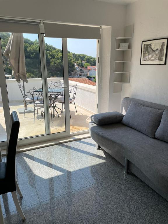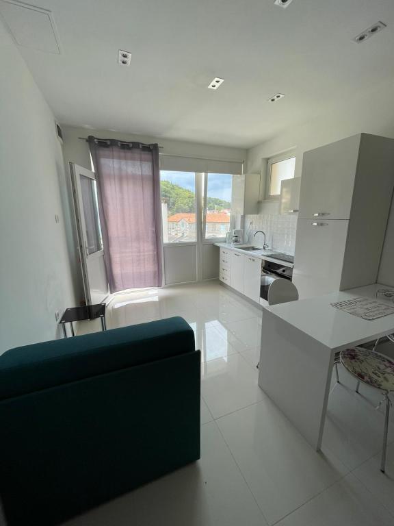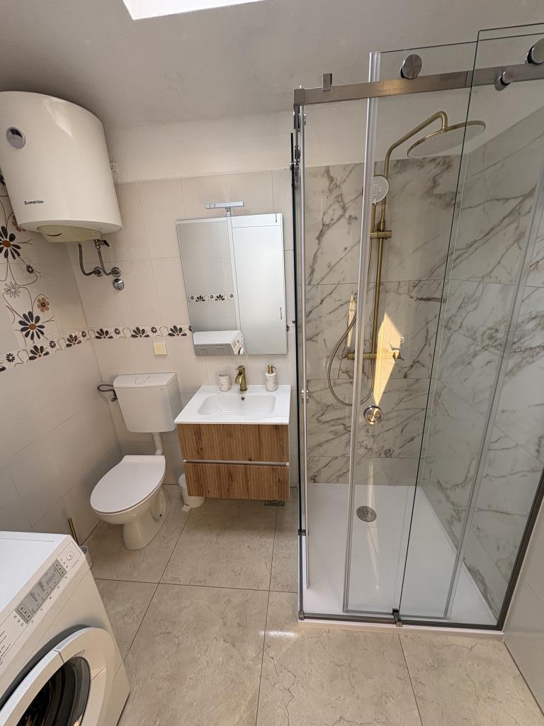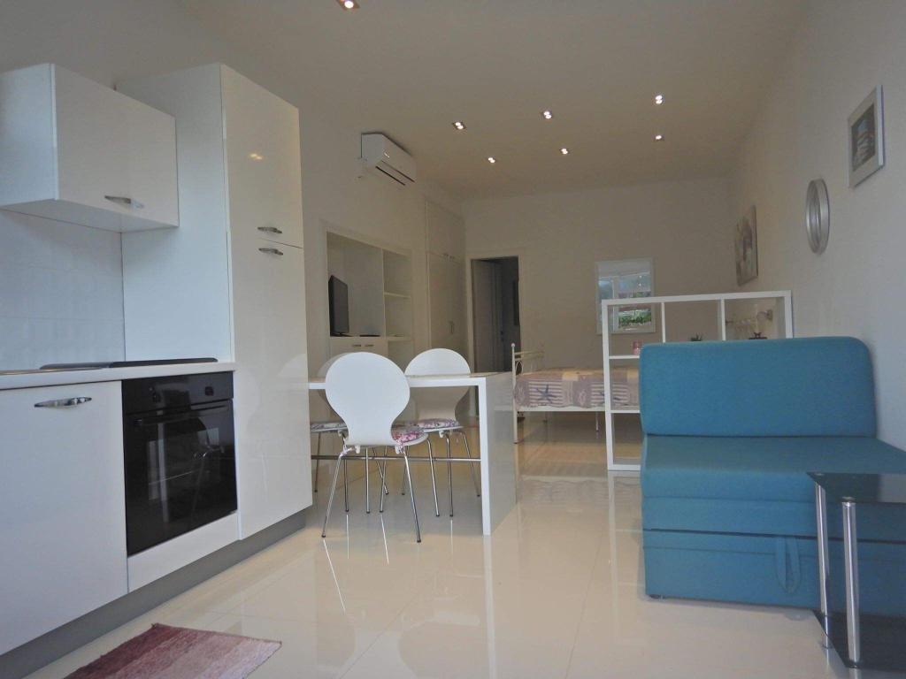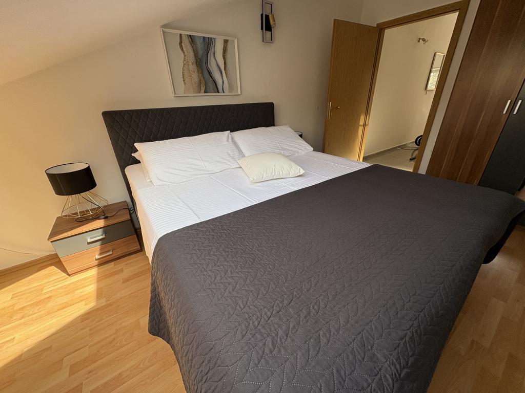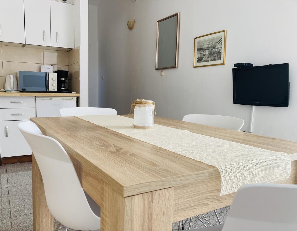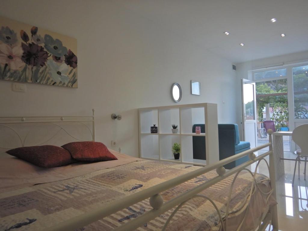 Apartmán 6 pro 2 osoby s krásným výhledem na moře, slunný a velmi prostorný se třemi ložnicemi s manželskou postelí, obývací pokoj s manželskou postelí, dvě koupelny, masážním sprchovým koutem, dvě klimatizace, indukční vařič, myčka, pračka , kávovar, varná konvice, mikrovlnná trouba a lednice. Terasa s krbem, grilem a terasou s výhledem na moře, které mají oddělené stoly a židle. Televizor v obývacím pokoji, a bezdrátové připojení k internetu je zajištěno. Je vybavena nádobí pro přípravu a servírování jídel a nápojů a příbory v přiměřeném množství. Je umístěn v prvním patře domu v centru města. To se nachází v blízkosti moře (40 m), obchod (50 m), četné pláže, restaurací, barů a dalších stravovacích zařízeních. V ceně je zahrnuto parkovací stání před domem, využití Kotvení lodí, ložní prádlo a ručníky, úklid po odjezdu a využití dětské lůžko v případě potřeby