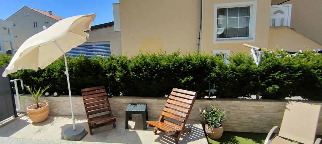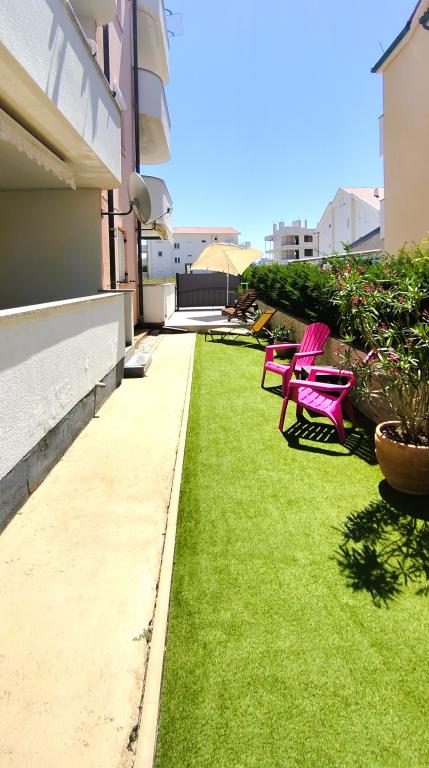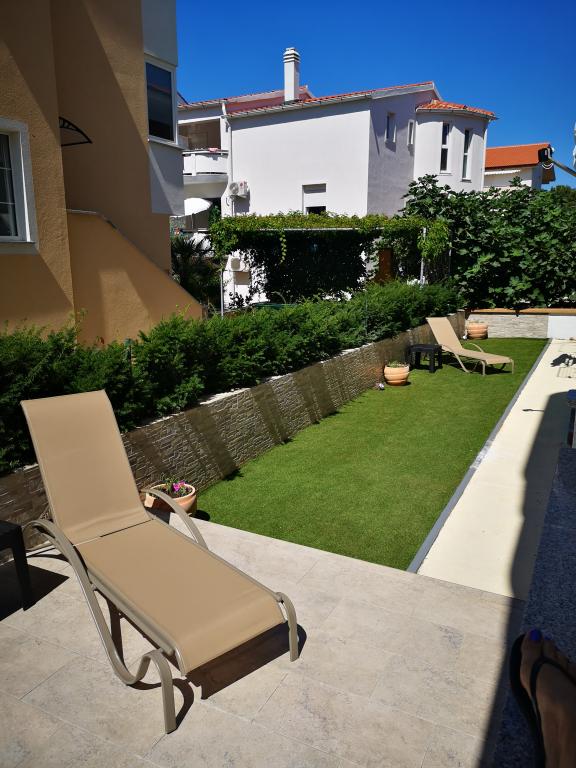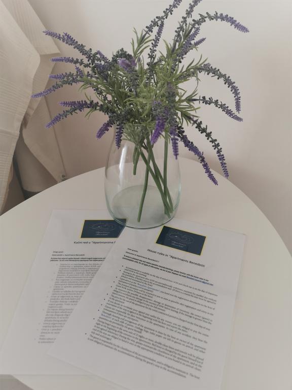 "Benedetti Apartments" se nachází téměř přímo u pláže, na perfektním místě, kde byste mohli téměř skočit přímo do moře! Jsou umístěny na malém, klidném místě, ideální pro relaxaci, 2 řady od naší hlavní pláže. Je to příležitost uniknout shonu a začít dokonalou dovolenou. Apartmány zdobí upravené zahrady, které vytvářejí ideální prostředí pro relaxaci. Představte si sami sebe na lehátkách s koktejlem, obklopeni klidem a květinami. Oblázková pláž "Mali Dubrovnik" je vzdálena pouhých 20 m (2 minuty) a písečná pláž je vzdálena pouhých 5 minut chůze. Restaurace jsou vzdálené 50 m, obchod 30 m od apartmánu. Pro větší nákupy se můžete dostat do centra Povljany snadnou chůzí nebo autem (600 m). Kavárna a tenisový kurt jsou jen 20 m od hotelu, přímo přes ulici. Apartmány se nacházejí v přízemí, ideální pro rodiny s dětmi a páry, které milují klidnou dovolenou. Uživatelé apartmánů mají k dispozici bezplatné parkování a internet, možnost využití grilu a k dispozici jsou společné venkovní plochy pro relaxaci. Zaparkujte auto a užívejte si!