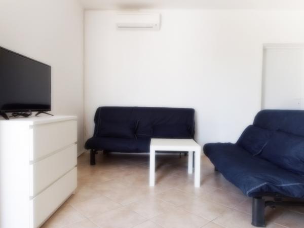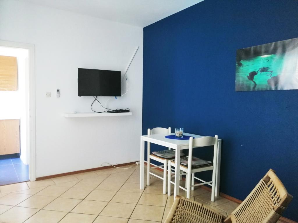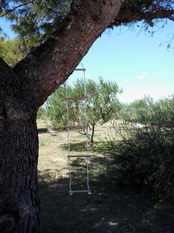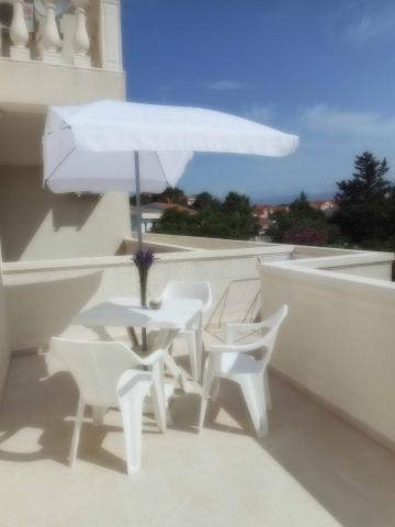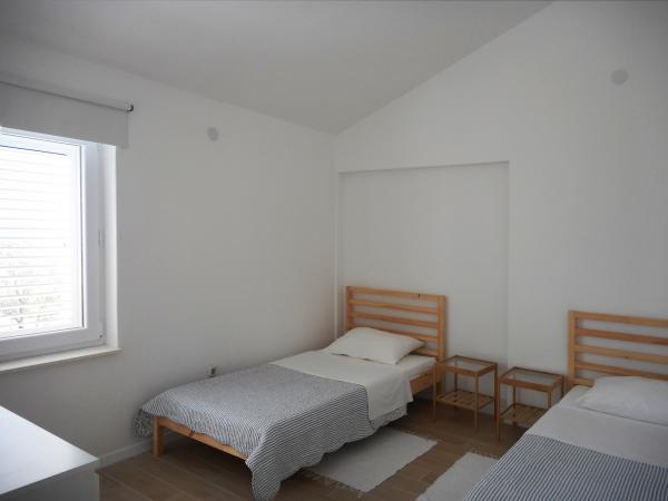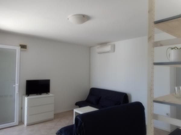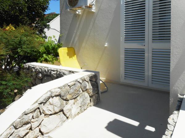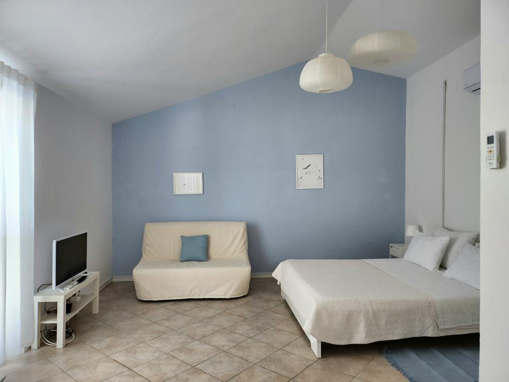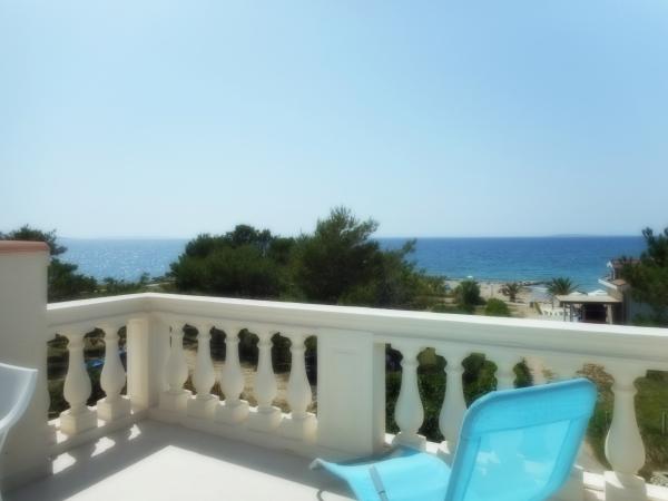 Apartmán je součástí krásně zařízeného domu s velkou zahradou. Vše v samotném apartmánu je zařízeno střídmě a je vhodné pro dovolenou. Velká terasa je přístupná z obou pokojů a má výhled na západ slunce. Je ve stínu celé dopoledne, ideální pro kávu s výhledem na moře. Zahrada je nádherný středomořský prostor plný borovic, olivovníků a nesmrtelných stromů s k dispozici lehátky a zahradním nábytkem a táhne se od domu až k pláži. Na pozemku je dostatek parkovacích míst. Fotografie nedokážou popsat pohodlí, čistotu, světlo a všechny ostatní vlastnosti tohoto ubytování. Hostitelka je mimořádně milá.