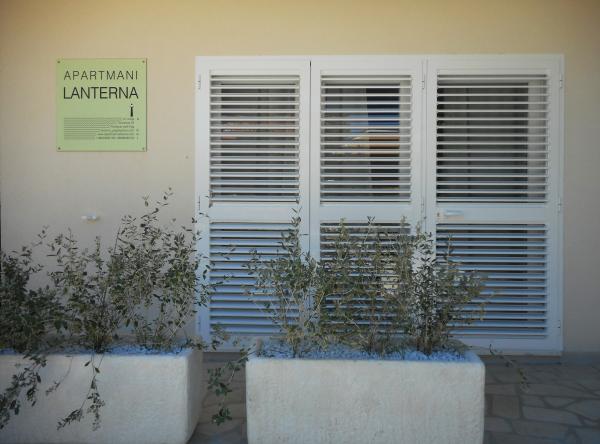 Apartmány Lanterna nabízí šest ubytovacích jednotek v bezprostřední blízkosti pláže a majáku. Zařízení je obklopeno velkou zahradou plnou zeleně s houpačkami pro děti. Každá ubytovací jednotka má velkou terasu a téměř všechny mají přímý výhled na moře. Parkování je zajištěno ve dvoře. Domácí mazlíčci jsou vítáni.