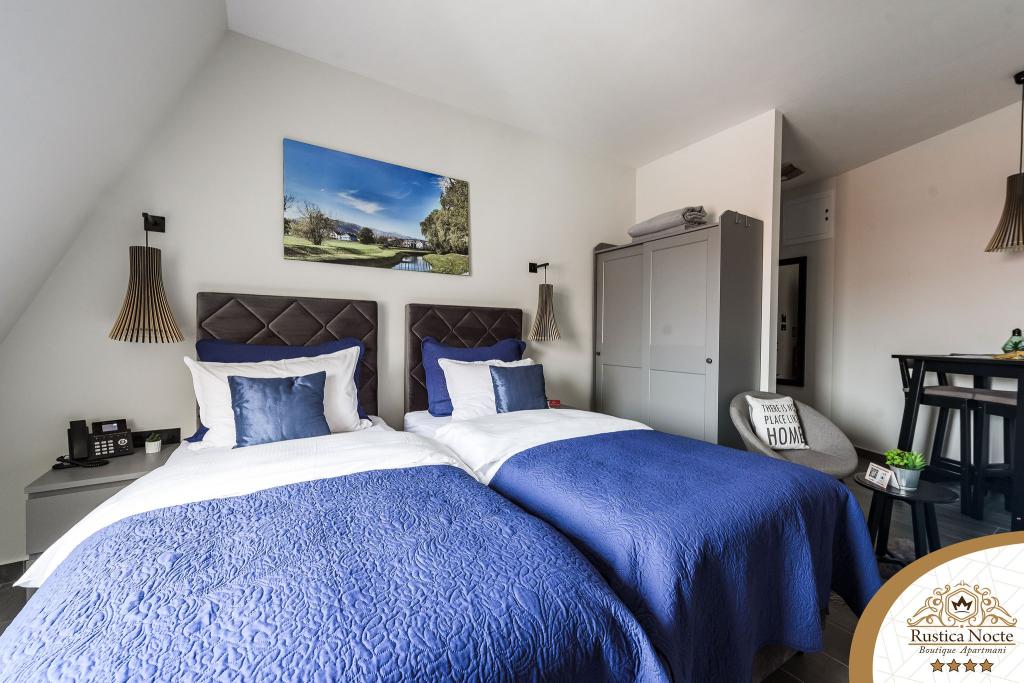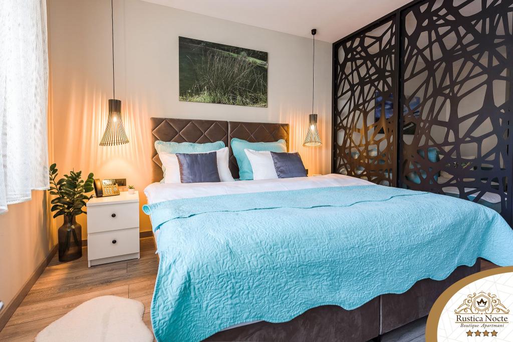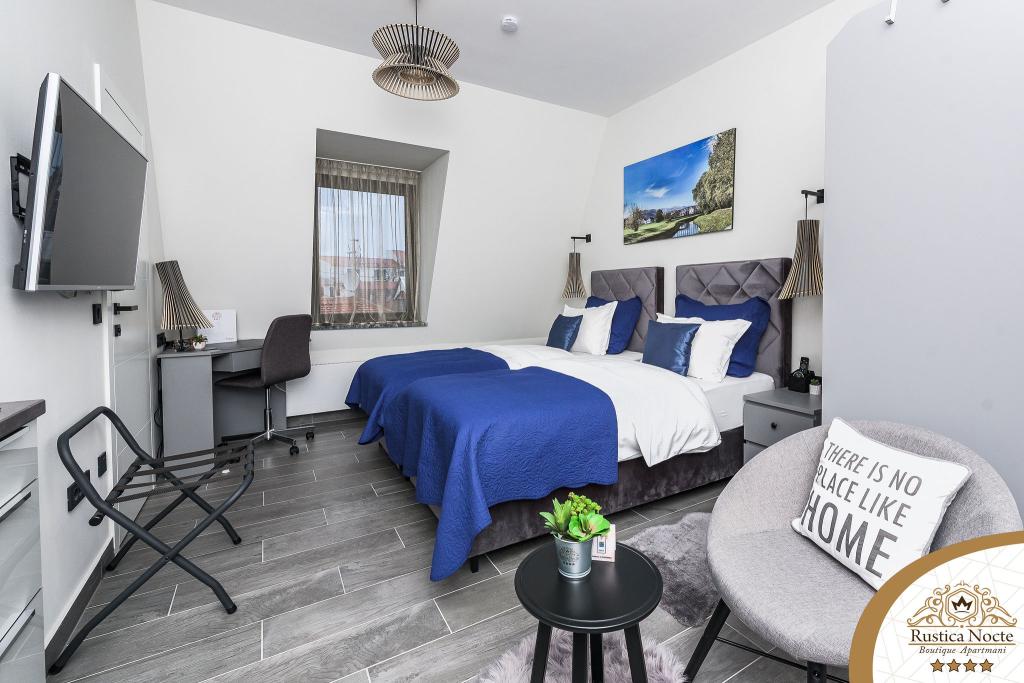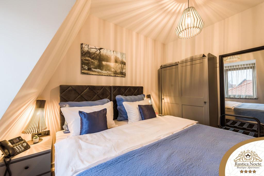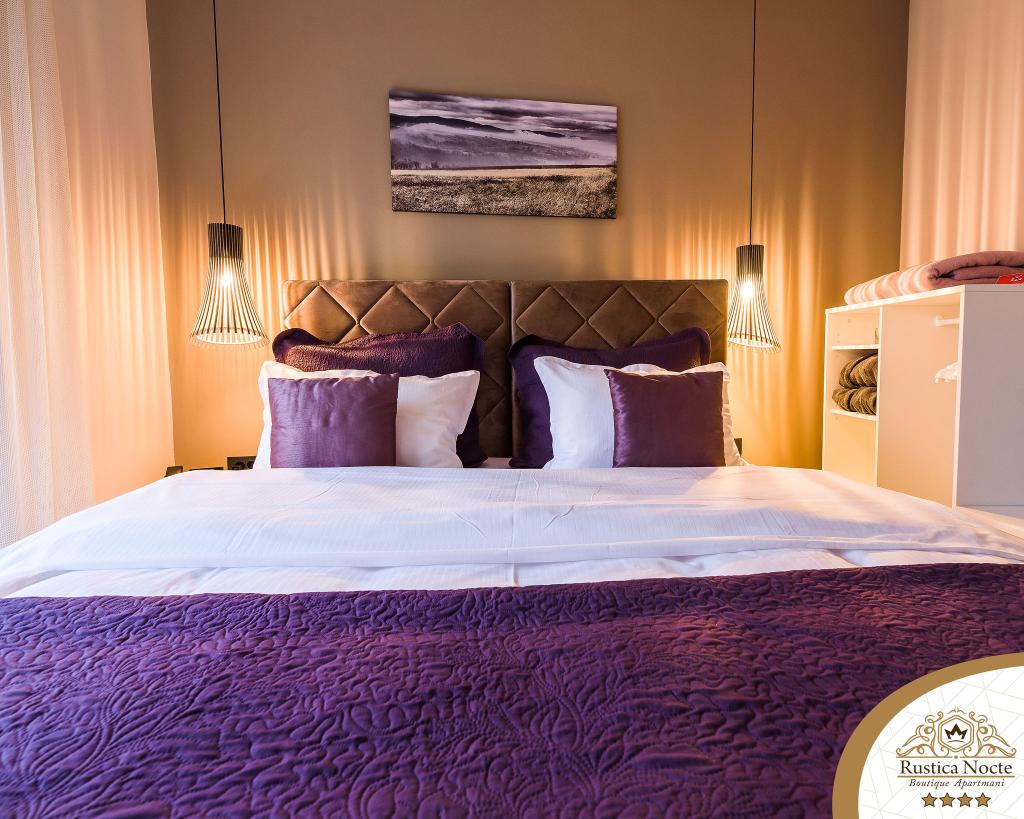 V samém srdci Slavonie, na začátku pěší zóny v Požeze, jsou apartmány Rustica Nocte Boutique ideálním místem pro dovolenou snů. Abychom Vám dovolenou co nejvíce zpříjemnili, naše moderní apartmány Vám nabízí špičkové vybavení a vyzdvihnout bychom chtěli především chytrý systém řízení celého apartmánu, bezplatné vysokorychlostní Wi-Fi a pevné i bezdrátové připojení k internetu, King size boxspringové postele, digitální trezory, ultra HD televizory Ambilight 50palcové TV přijímače s Netflixem, satelitní a místní programy a Ambilight LED osvětlení na oknech, větrané a vytápěné koupelny a plně vybavené kuchyně v každém z apartmánů. Součástí každého apartmánu je také minibar s nealkoholickými a alkoholickými nápoji a občerstvením. Součástí apartmánů je i dětský koutek se stolky, hračkami, omalovánkami a hracími podložkami. Díky tomu všemu si můžete naplánovat dovolenou velmi bezstarostně.
