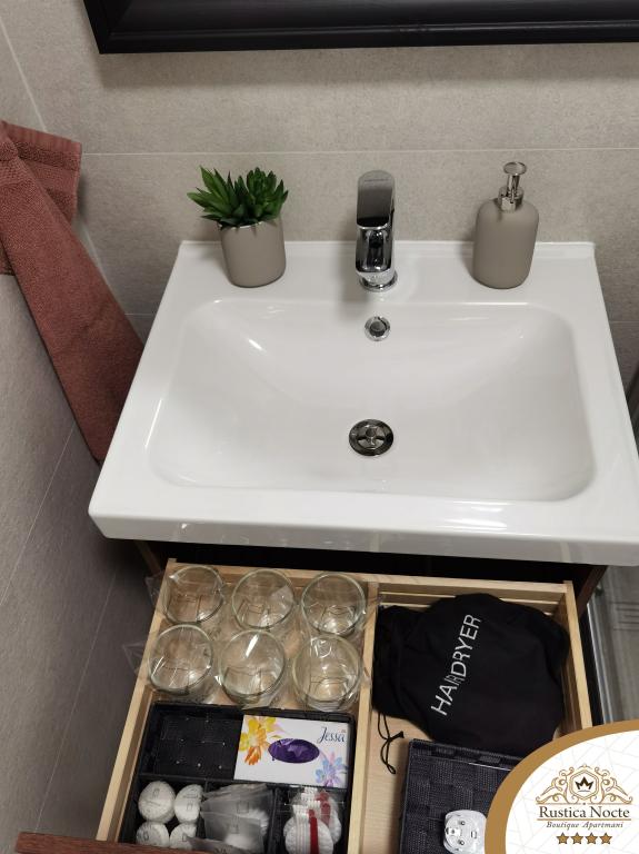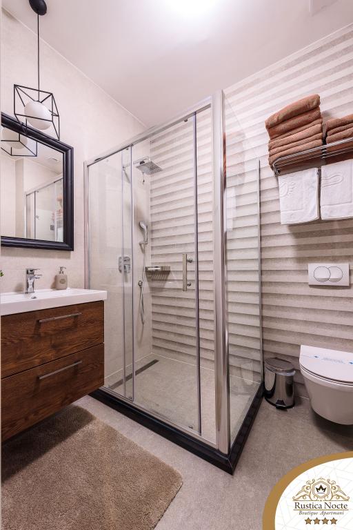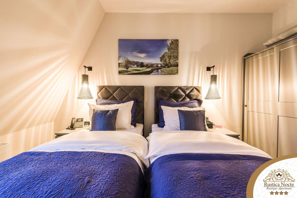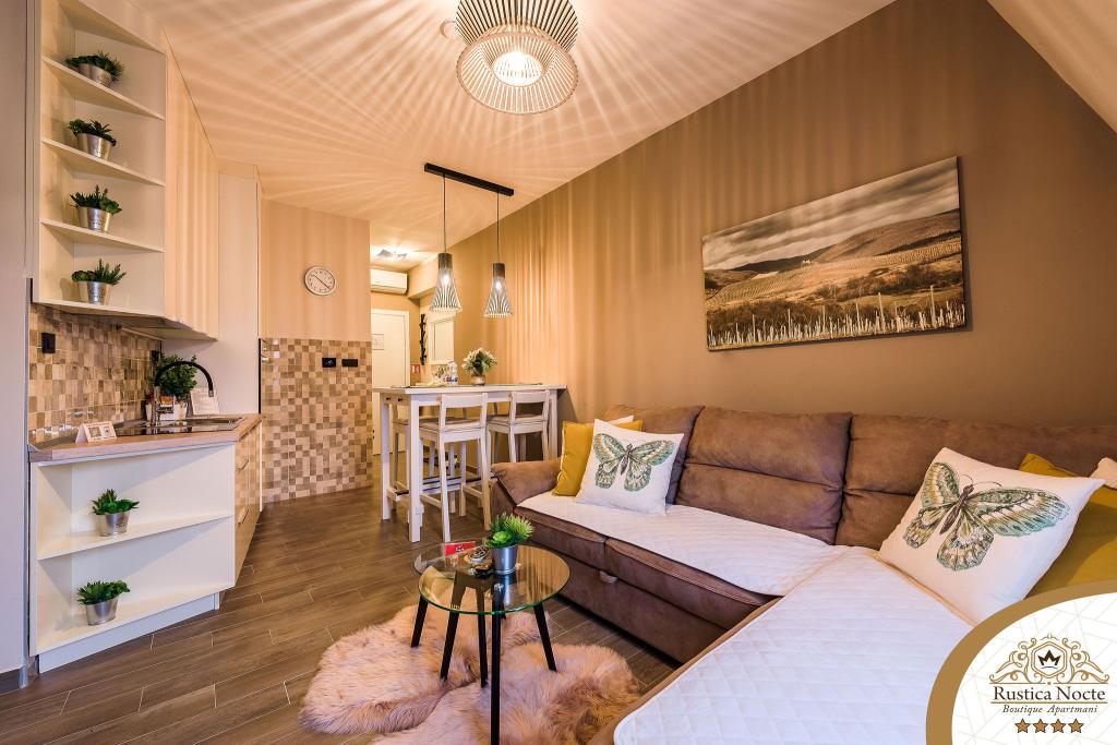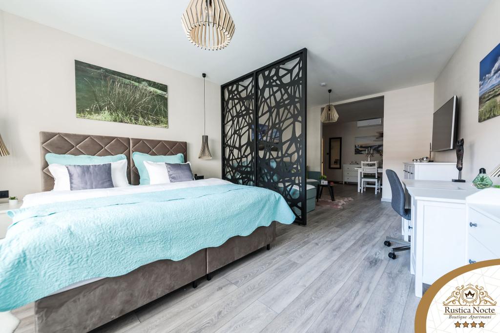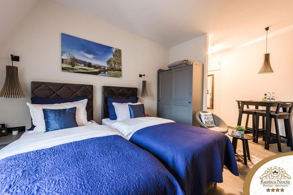 V samém srdci Slavonie, na začátku pěší zóny v Požeze, jsou apartmány Rustica Nocte Boutique ideálním místem pro dovolenou snů. Abychom Vám dovolenou co nejvíce zpříjemnili, naše moderní apartmány Vám nabízí špičkové vybavení a vyzdvihnout bychom chtěli především chytrý systém řízení celého apartmánu, bezplatné vysokorychlostní Wi-Fi a pevné i bezdrátové připojení k internetu, King size boxspringové postele, digitální trezory, ultra HD televizory Ambilight 50palcové TV přijímače s Netflixem, satelitní a místní programy a Ambilight LED osvětlení na oknech, větrané a vytápěné koupelny a plně vybavené kuchyně v každém z apartmánů. Součástí každého apartmánu je také minibar s nealkoholickými a alkoholickými nápoji a občerstvením. Součástí apartmánů je i dětský koutek se stolky, hračkami, omalovánkami a hracími podložkami. Díky tomu všemu si můžete naplánovat dovolenou velmi bezstarostně.