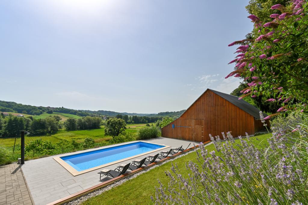 Tento neuvěřitelný dům se nachází na jednom z mnoha kopců krásného Zagorje. Obklopen kopci, vinicemi, sady a lesy, je ideálním místem pro zábavu a odpočinek v přírodě. Nádherný výhled, který se táhne, vám umožní vychutnat si krásné východy slunce, podle čehož dům dostal své jméno. Sunrise Hill je zařazen do kategorie 4* a poskytuje pohodlné ubytování pro 8 osob a je primárně orientován na rodiny s dětmi. Je ideální pro klidnou dovolenou nebo společenské setkání, ale také pro rekreaci a sport. Kromě upravené zahrady, která nabízí velký bazén se sprchou a krytou a otevřenou terasou, gril, domeček na hraní, parkoviště, zdobí dům pečlivě zdobený interiér, kterému dominuje dřevo a světlé a uklidňující tóny. Dům se skládá z přízemí s prostorným obývacím pokojem s kuchyní a jídelnou, koupelnou, dětskou hernou se stolním fotbalem, herní konzolí PS 4 a deskovými hrami a prostornou terasou, která láká k odpočinku a socializaci. V prvním patře domu jsou tři ložnice.