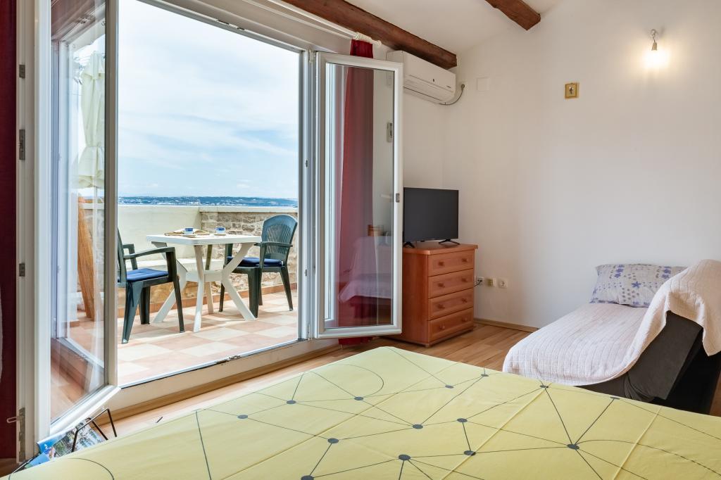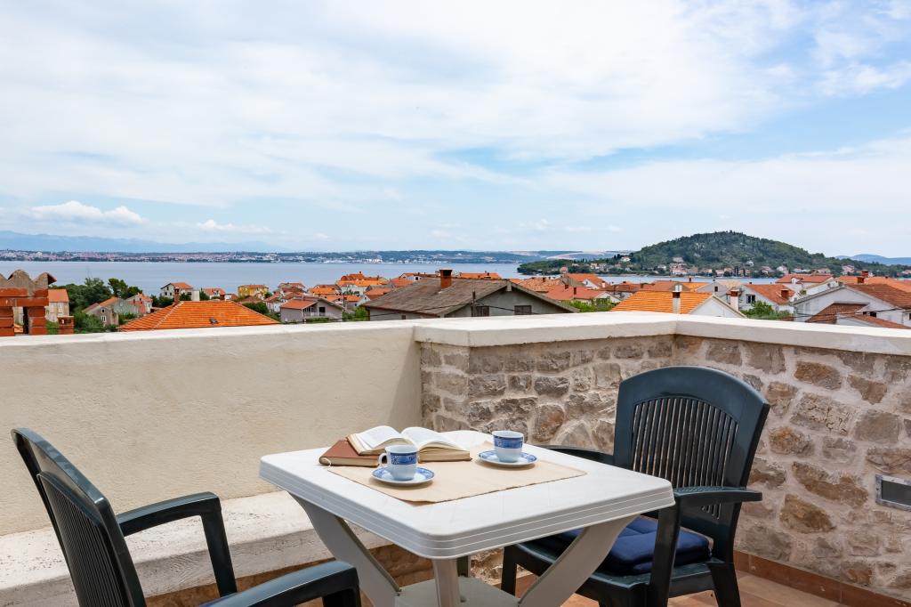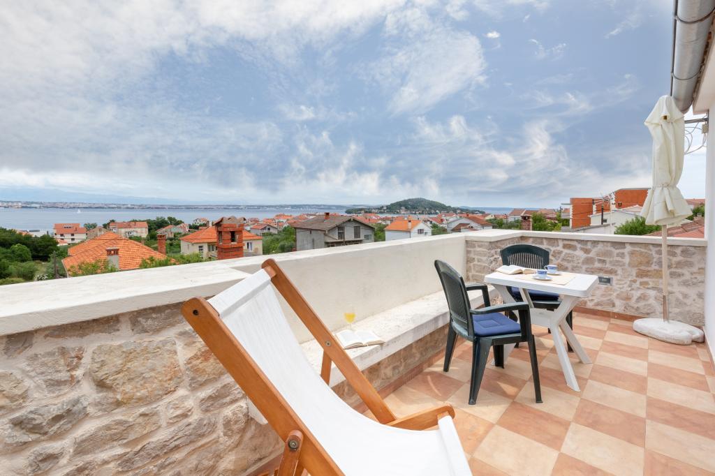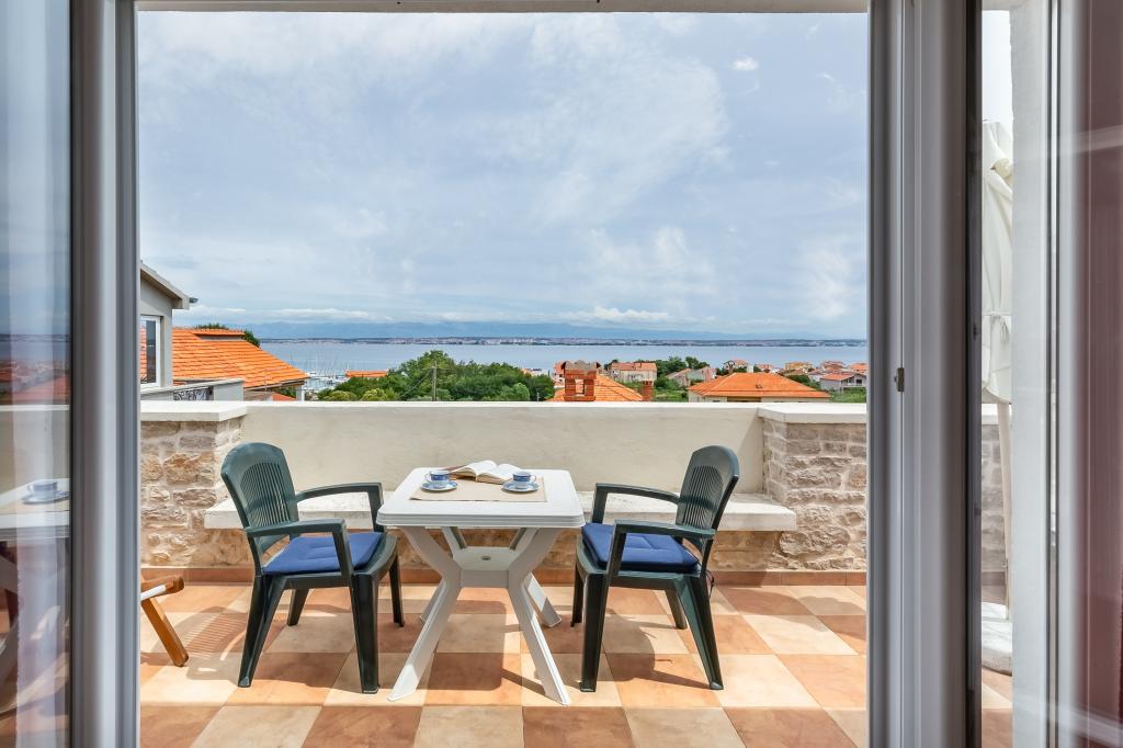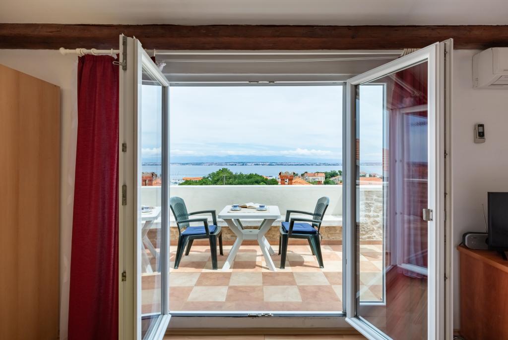 Pohodlný, příjemný apartmán pro 2 osoby ve velmi klidné části Preka, 3 minuty chůze od pláže, centra a veškeré občanské vybavenosti. Apartmán se skládá z kuchyně, koupelny, prostorného pokoje s obývacím pokojem a velké terasy s výhledem na moře, Zadar a Zadarský kanál. Samostatný vchod, soukromí a klid. Klimatizace, Wi-Fi