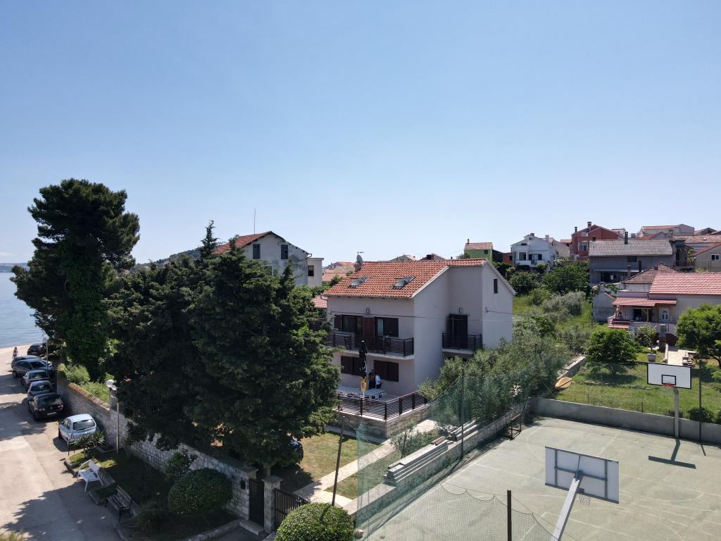 Dům se nachází v první řadě k moři, nedaleko centra Prek. Komfortní, nově zrekonstruovaný byt se nachází v prvním patře domu a má 2 ložnice, dětský pokoj, obývací pokoj s kuchyní, koupelnu a terasu. Pokoje mají přístup na balkon s výhledem na pláž a moře. Z obývacího pokoje se dostanete na terasu s výhledem na pláž a moře. V obývacím pokoji je přistýlka. Komfortní garsoniéra 60 m2 se 4 lůžky, kuchyní, obývacím pokojem a koupelnou se nachází v podkroví domu. V přízemí je společná velká terasa, kterou mohou využívat hosté ze studiových apartmánů. Na dvoře máme také velký gril a pec na chleba. Parkování pro auta je zajištěno ve dvoře. Apartmány mají klimatizaci, satelitní TV a Wi-Fi připojení.