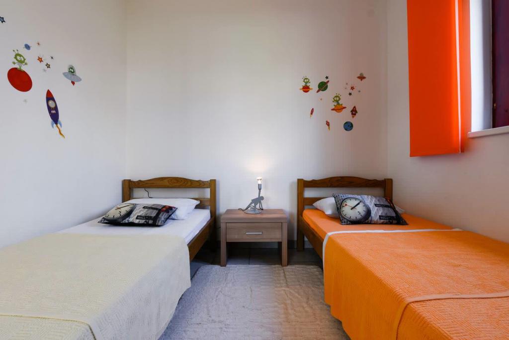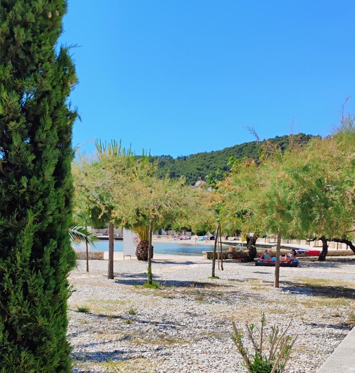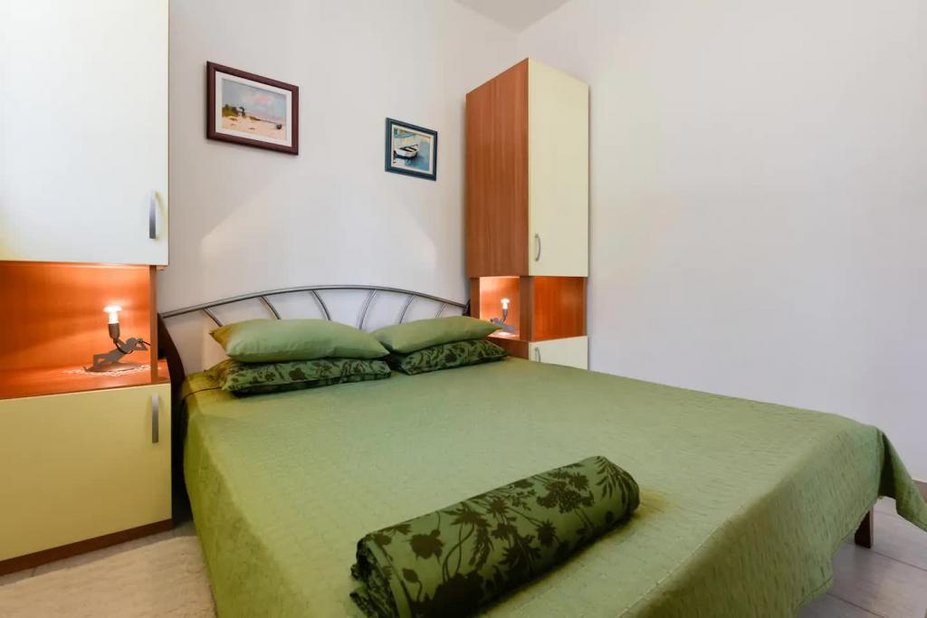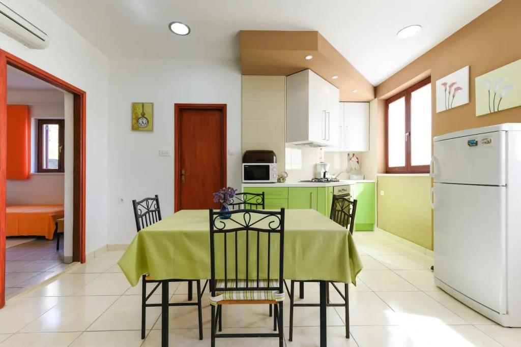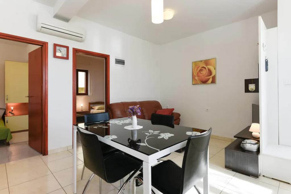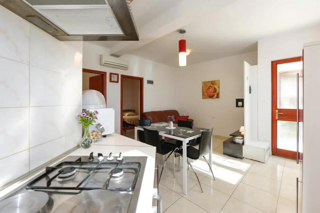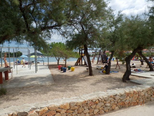 Nové, krásně zařízené apartmány v přízemí rodinného domu, jen pár kroků od krásné pláže Jaz, která je oceněna Modrou vlajkou a má volejbalové hřiště. V bezprostřední blízkosti se nacházejí restaurace a kavárny a dětské hřiště je vzdálené jen asi dvacet metrů. Každý apartmán má vlastní velkou terasu s výhledem na moře. Apartmány mají dvě ložnice, vybavenou kuchyň, koupelnu, obývací pokoj, venkovní gril a soukromé parkoviště. Uvítací dárek je zahrnut v ceně
