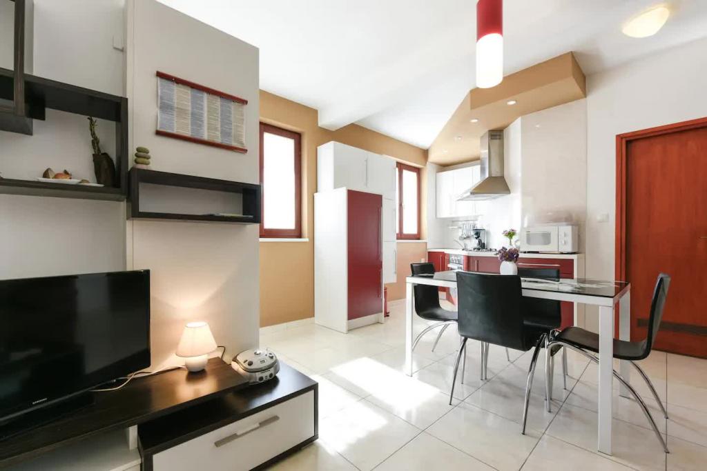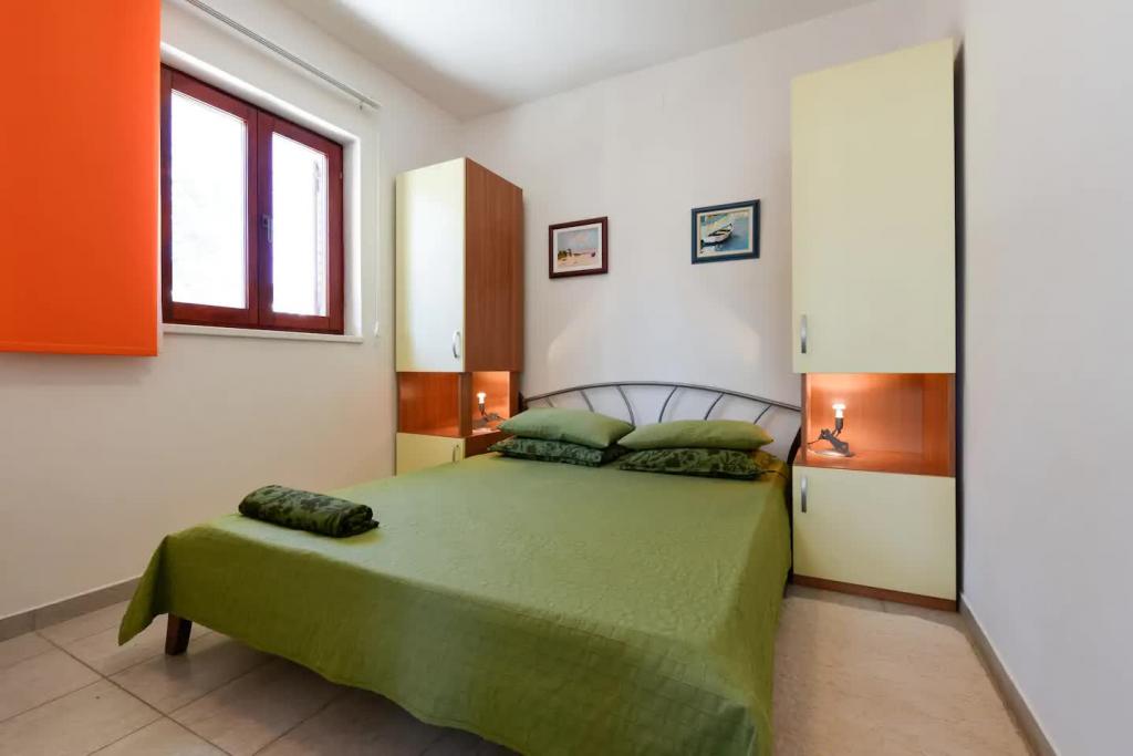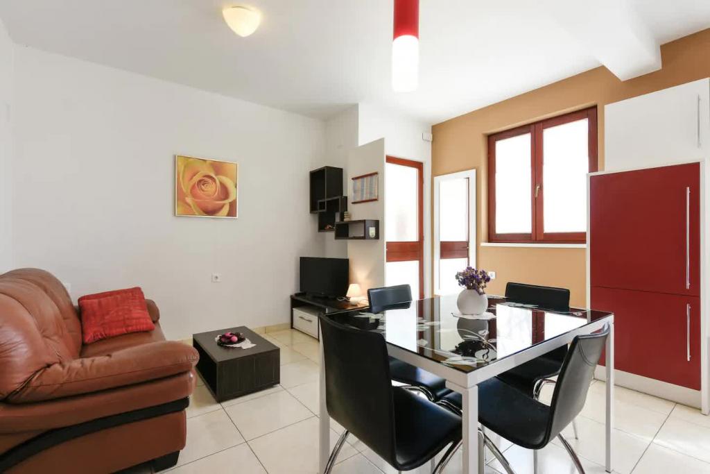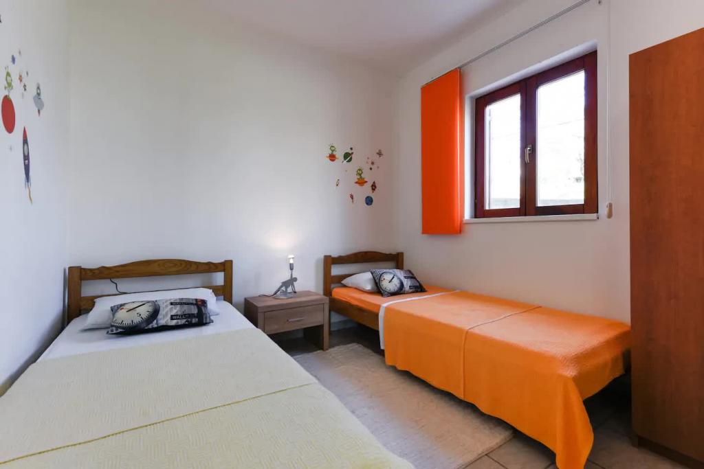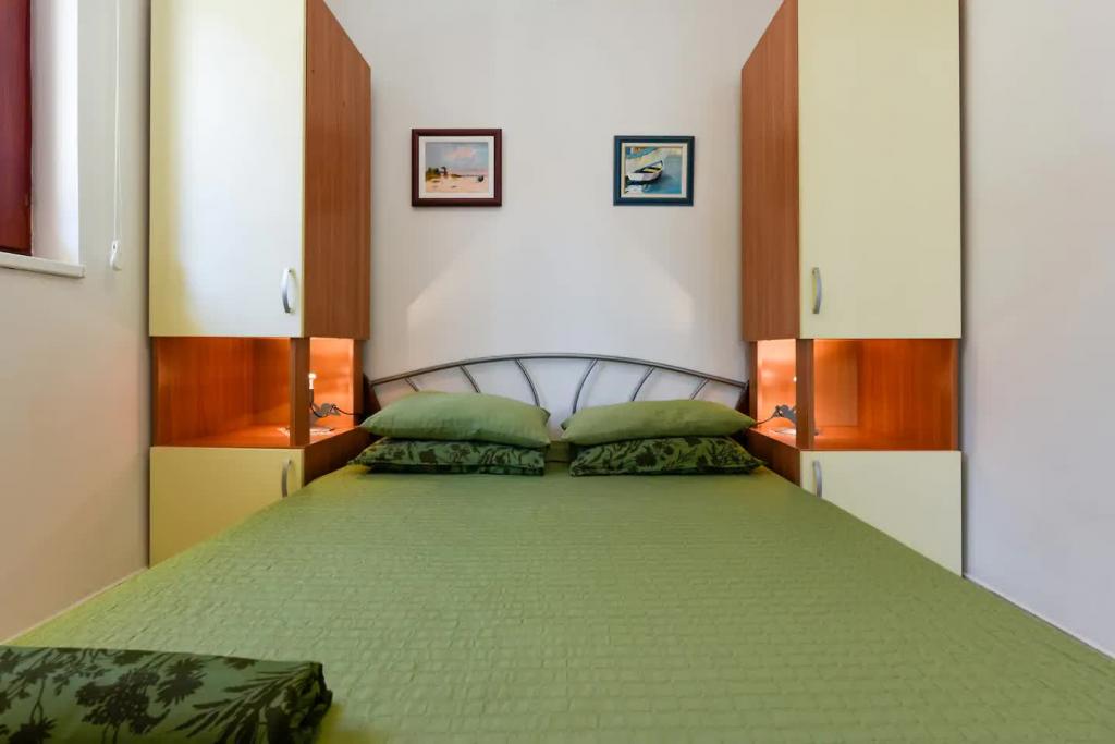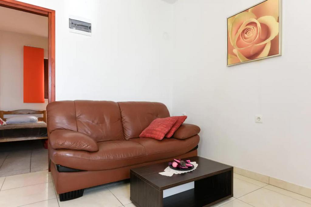 Nové, krásně zařízené apartmány v přízemí rodinného domu, jen pár kroků od krásné pláže Jaz, která je oceněna Modrou vlajkou a má volejbalové hřiště. V bezprostřední blízkosti se nacházejí restaurace a kavárny a dětské hřiště je vzdálené jen asi dvacet metrů. Každý apartmán má vlastní velkou terasu s výhledem na moře. Apartmány mají dvě ložnice, vybavenou kuchyň, koupelnu, obývací pokoj, venkovní gril a soukromé parkoviště. Uvítací dárek je zahrnut v ceně