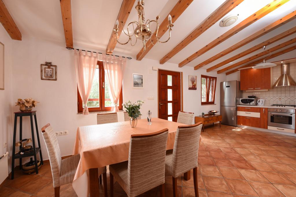 Dům se nachází v blízkosti centra, kde jsou obchody, kavárny, pláže a restaurace a je dostatečně daleko pro odpočinek a relaxaci. Dům je plně vybavený, má 2 ložnice, jednu v přízemí a druhou na galerii. Má prostorný obývací pokoj, kuchyň s myčkou, koupelnu s pračkou, klimatizaci, satelitní TV a Wi-Fi. Dvůr se skládá z parkoviště, domu s grilem a zastřešené terasy.