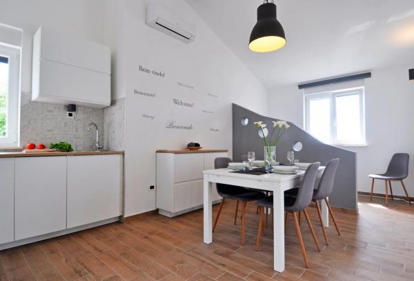 V apartmánu jsme byli ubytováni 2 týdny v červenci 2014 Velmi pěkný prostorný Aparmán je vybaven vším co potřebujete a odpovídal reklamě. Okolí domu je ještě hezčí a lépe vybavené než na fotkách. Domácí byli fantastický. Pozvali nás na večeři (dělají vynikajícím pizzu v kamenné peci), ukázali okolí, poradili ve všem co jsme potřebovali. Apartmám je blízko centra cca 100m ale přesto je to klidná lokalita. Moře na Kamenjaku je nádherně čisté. Celkově můžeme jen doporučit každému, kdo se chce dobře cítit. Děkujeme celé rodině Flegar z příjemně strávenou dovolenou.