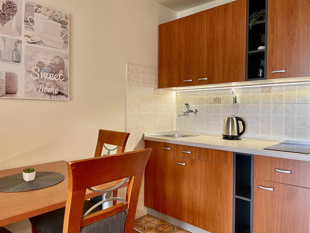 Tento byt můžeme s čistým svědomím doporučit! Velmi čistá, velmi dobře vybavená kuchyň s jídelnou a obývací částí, extra velká ložnice, obrovská koupelna a velká terasa nesplní žádné přání. V kuchyni/obývací části je klimatizace - ale tu opravdu nepotřebujete, protože zadní část bytu je vestavěná do svahu a byt se tolik netopí. Majitelka je velmi přátelská a v případě potřeby je dosažitelná. K dispozici je také přístřešek pro 2 vozidla. V okolí je několik restaurací (2 až 5 minut chůze), kde se můžete velmi dobře najíst a ceny jsou v pořádku. Děkujeme za krásný prázdninový týden! Siegfried
