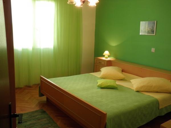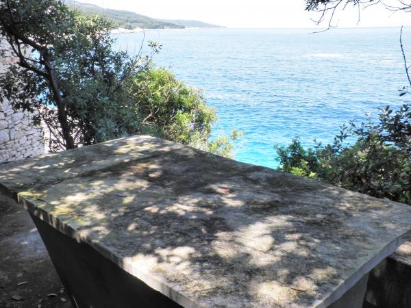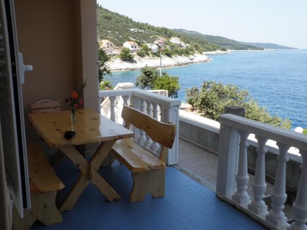 Tyto pohodlné a prostorné apartmány se nacházejí v klidné zátoce Prigradica, na ostrově Korčula. Nacházejí se na prvním řádku k moři a mají svou vlastní pláž (10 m), zvláštní místo ve stínu s kamenným stolem a lavičkami, kde mohou skrývat ty, kteří dlouho zůstávají na slunci. Je to 3 minuty chůze od centra veletrhu a 7 minut chůze od oblázkové pláže, sportovního hřiště a restaurací. Apartmán v prvním patře má 3 ložnice s manželskou postelí (2. patro 2), kuchyň a obývací pokoj, koupelnu, terasu a venkovní krb. Dvě ložnice mají výhled na moře a na ostrově Hvar. K dispozici jsou 2 ručníky a ložní prádlo, které se mění jednou týdně. Na terasách, z nichž západ slunce nabízí krásný výhled na západ slunce, najdete dřevěný zahradní nábytek. Byt je vybaven klimatizací, TV, satelitní příjem, lednice a mrazák, plynový a elektrický sporák, trouba, mikrovlnná trouba, kávovar, topinkovač, žehlička, vysoušeč vlasů, pračka, venkovní gril