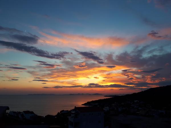 Piknik a po květnovém dni. Krásné a především klidné místo. Pláže ve vzdálenosti 300-400 metrů, tam jsou také hospody, kde si můžete snadno jíst při obdivování západy slunce. Skvělé místo k odpočinku s dětmi a zvířaty - byli jsme zde s dvěma kočkami a není problém ani za příplatek. K dispozici je vše, co jsme potřebovali - plně vybavenou kuchyň, wifi, TV, gril, klimatizaci a během tohoto období na balkoně voňavé růže. Přivítat úsměv a tinktury k vyzkoušení. Host - velmi pěkný a užitečný (měli jsme s vozem malý problém, ale mechanik Taťy nám okamžitě pomohl). Jsme v Chorvatsku již potřetí (dříve - Tučepi, Igrane-Seline) a cena, kterou za tyto chvíle ticha a odpočinku zaplatíme, je nejnižší s přihlédnutím k normám. K dispozici jsou místa, kde stojí odpočinek a ticho a názory, zejména Gospa z Lorety (ve dne iv noci). jsou v blízkosti hlavních obchodů: konzum 10 min, tommy 12 a co nejdůležitější trh s rybami (lahodná grilovaná) 20 min, tak proč nechci více děkovat za vaši pohostinnost