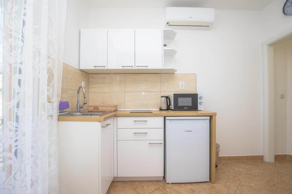 Bydleli jsme v apartmánu A4 2 týdny (2 dospělí + 3 děti) a můžu ho jen doporučit. Je velmi čistý, má 2 pohodlné ložnice, plně vybavenou kuchyň, obývací pokoj s pohovkou a TV a balkon, kde si můžete vychutnat kávu a výhled na moře. Nachází se v klidné čtvrti, pláž (s barem) je vzdálená 2 minuty a mnoho dalších pláží je v docházkové vzdálenosti. V okruhu přibližně 5 minut jízdy je několik trhů. Hostitelé jsou velmi milí, vždy ochotní a vyrábějí prvotřídní olivový olej.