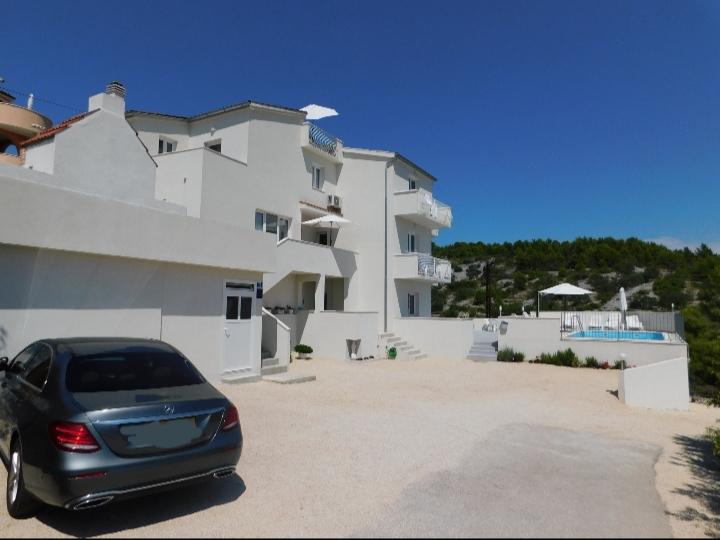 Plně vybavené krásné apartmány s BAZÉNEM a plochou na opalování 50 m2 se nacházejí v krásné a klidné lokalitě Primoštenu. Nacházíme se 10 minut chůze do centra po krásné cestě u moře, 5 minut chůze na nejbližší pláže, kde si můžete celý den užívat slunce s výhledem na starou část Primoštenu a nakonec si užít západ slunce . Apartmány mají klimatizaci, WI-FI zdarma, android/smart TV, satelit, kávovar, varnou konvici... Ložní prádlo a kuchyňské utěrky se mění jednou týdně a ručníky (2 střední a jeden velký na osobu) dvakrát týdně. Majitel je hostům k dispozici 24 hodin denně. Na dvoře je bazén, sprcha, gril s jídelním stolem, posezení, místo pro hraní dětí... Parkovací místa jsou přímo u objektu. Za mnoho let, co se zabýváme pronájmem bytů, jsme získali zkušenosti, díky kterým se u nás budete cítit jako doma. VÍTEJTE